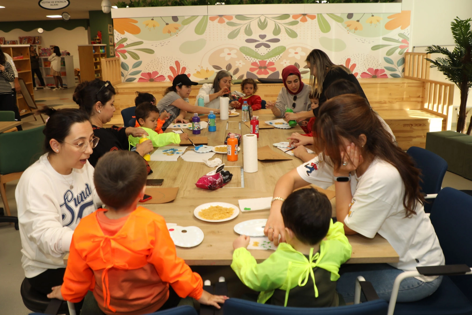 Farklı atölyelerle çocukların etkinlikler yaptığı Oyuncak Kütüphanesi ve Eğitim Merkezi’nde her hafta yapılan 2-3 ve 4-6 yaş arası çocukların anneleriyle katıldığı Anne-Çocuk atölyesinde çocuklar sosyalleşirken anneleri ile de bağları kuvvetleniyor. ‘Kolye yapıyorum’, ‘Mandalı Açalım’, ‘Mutlu Güneş’ ‘Kirpim Makarnadan’ gibi çeşitli eğitimlerle çocukların el becerileri gelişirken sosyalleşmeleri de sağlanıyor.