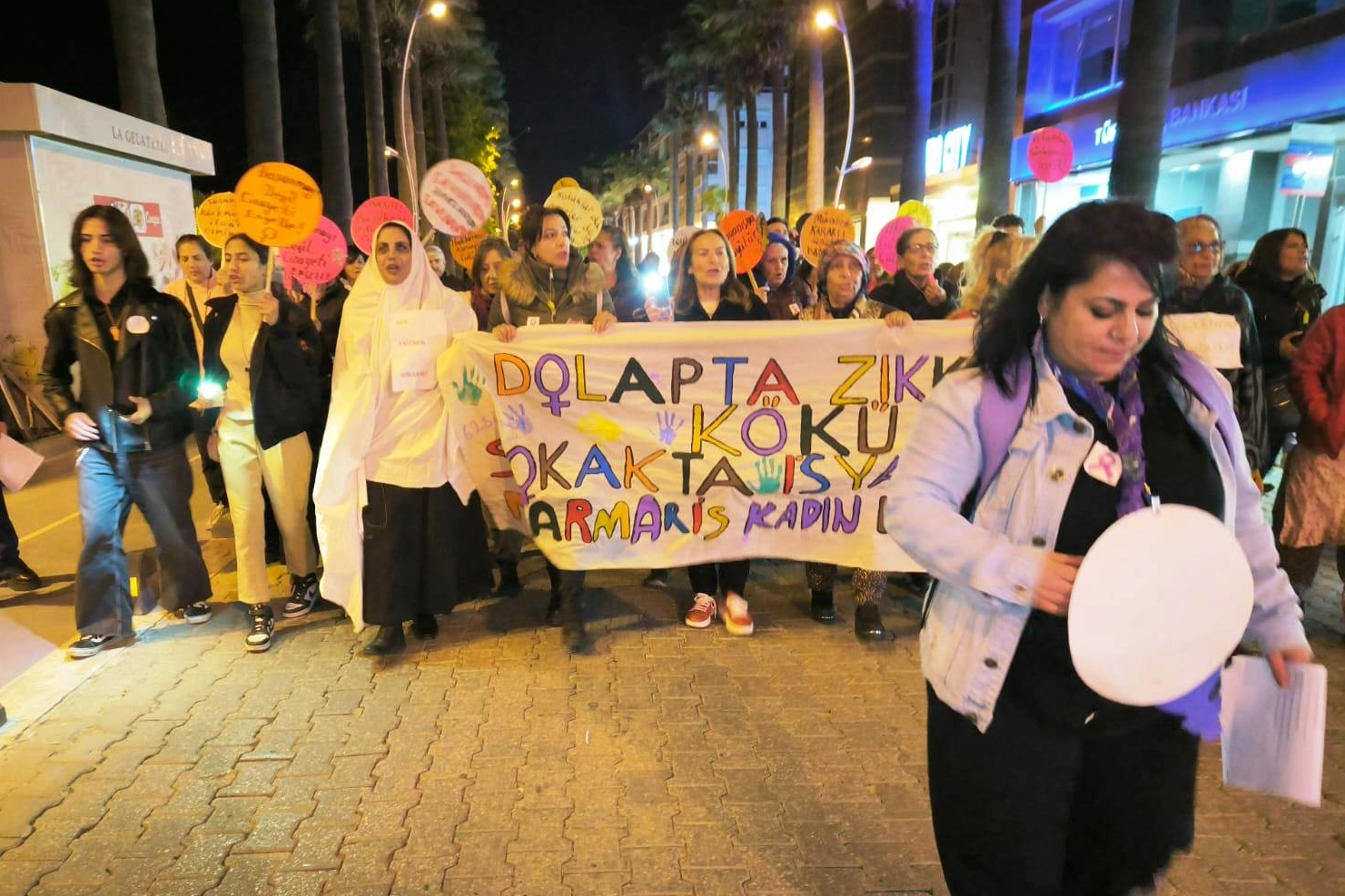 "Bugün bizi susturan ne varsa, o düzenin bir parçası" diyen Marmarisli kadınlar, "Biz kadınlar, cinsiyetimiz nedeniyle hayatımızın her anında tehdit altında yaşıyoruz. Bu tehdit, sadece fiziksel şiddetle değil, ekonomik, psikolojik ve sosyal baskılarla da şekilleniyor.Medyada, evde, sokakta, iş yerinde, siyasette şiddetin normalleştirilmesine isyan ediyoruz. Kadınlar özgür oluncaya, suskunluklar birleşip çığlık oluncaya kadar vazgeçmeyeceğiz. Benim bedenim, benim kararım sözünü her yerde duymaya devam edeceksiniz. Sesimiz, suskun fısıltıların çığlığı. Ve bu çığlık sisteminizi başınıza yıkana kadar kumdan kalelerinizin duvarlarında yankılanmaya devam edecek.Biz, kadınların özgür ve korkusuz yaşadığı bir dünya istiyoruz. Şiddetin sessizlikle değil, cesaretle engellendiği bir toplum hayali kuruyoruz" diye konuştu