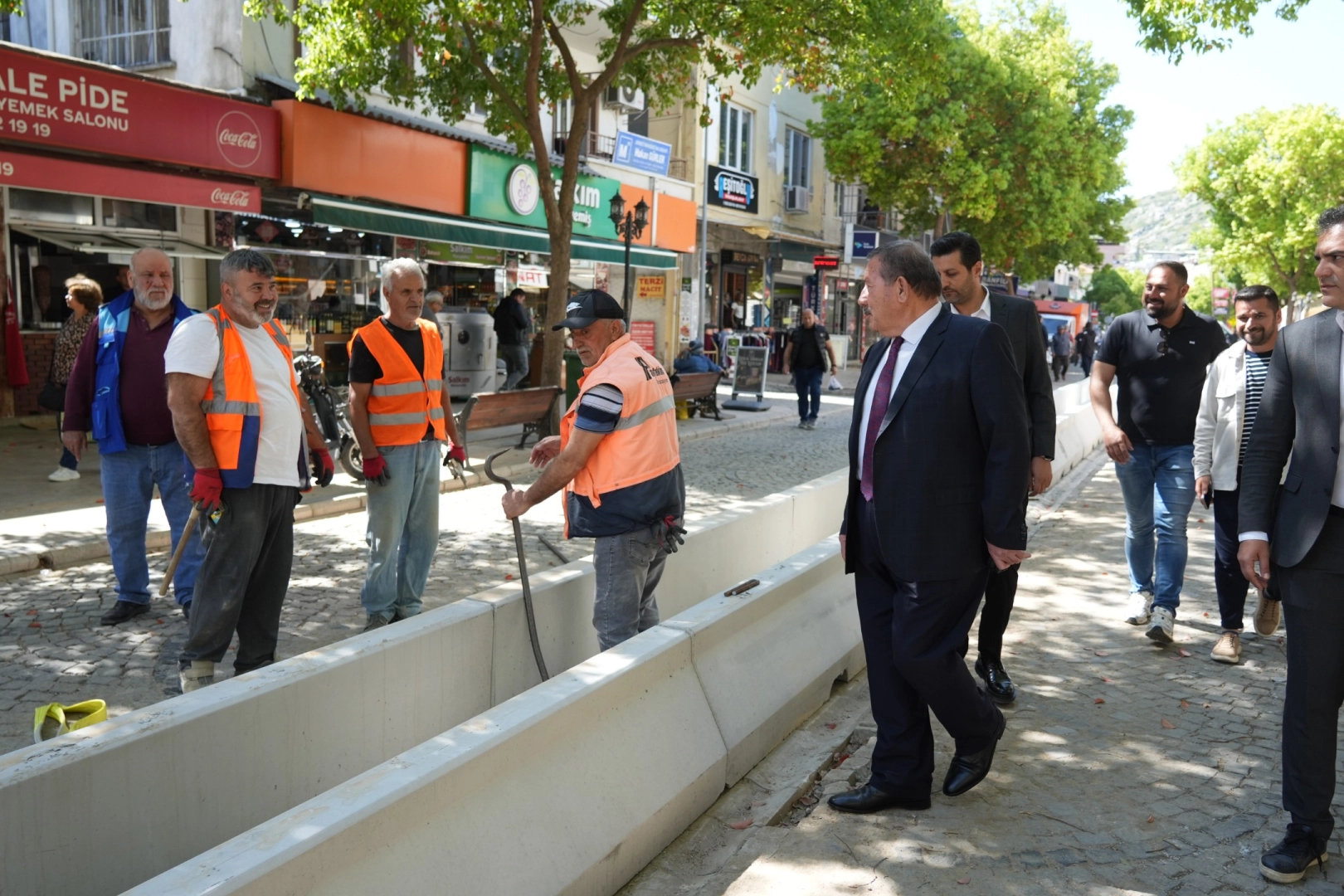 Menteşe Caddesi’nde devam eden orta refüj düzenleme çalışmaları, Güneş Mahallesi parke kaplama çalışmaları, Hurdacılar Çarşısı, Fen İşleri Binası yapımı ve Cumhuriyet Mahallesi park çalışmalarını inceleyen Başkan Topuz, yapılması gereken faaliyetler hakkında ekiplere talimatlar vererek notlar aldırdı.