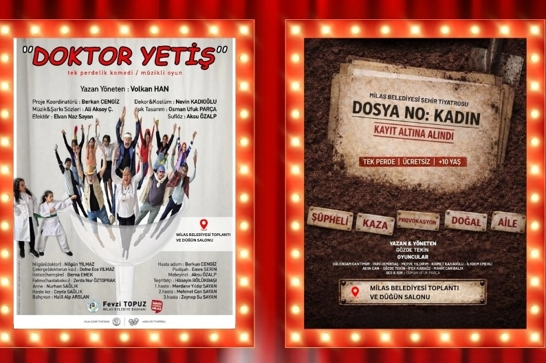 MUĞLA (İGFA) - Muğla Milas Belediyesi Şehir Tiyatrosu tarafından izleyenlerin beğenisine sunulacak ‘Dosya No: Kadın – Kayıt Altına Alındı’ ve ‘Doktor Yetiş’ adlı tiyatro oyunları Milas Belediyesi Toplantı ve Düğün Salonu’nda sahnelenecek.