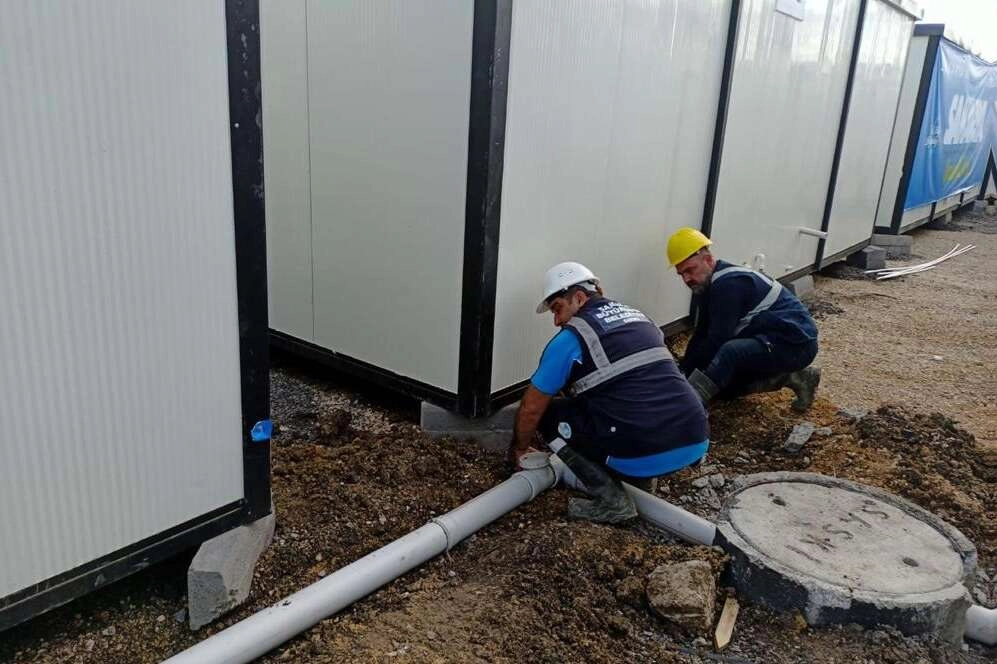 SAKARYA (İGFA) - Sakarya Büyükşehir Belediyesi Su ve Kanalizasyon İdaresi (SASKİ), Hatay’ın Antakya ilçesinde Büyükşehir Belediyesi tarafından kurulumu devam eden Kardeşlik Kenti’nde bulunan konteynerlerin atıksu ve içme suyu bağlantılarını sürdürüyor.