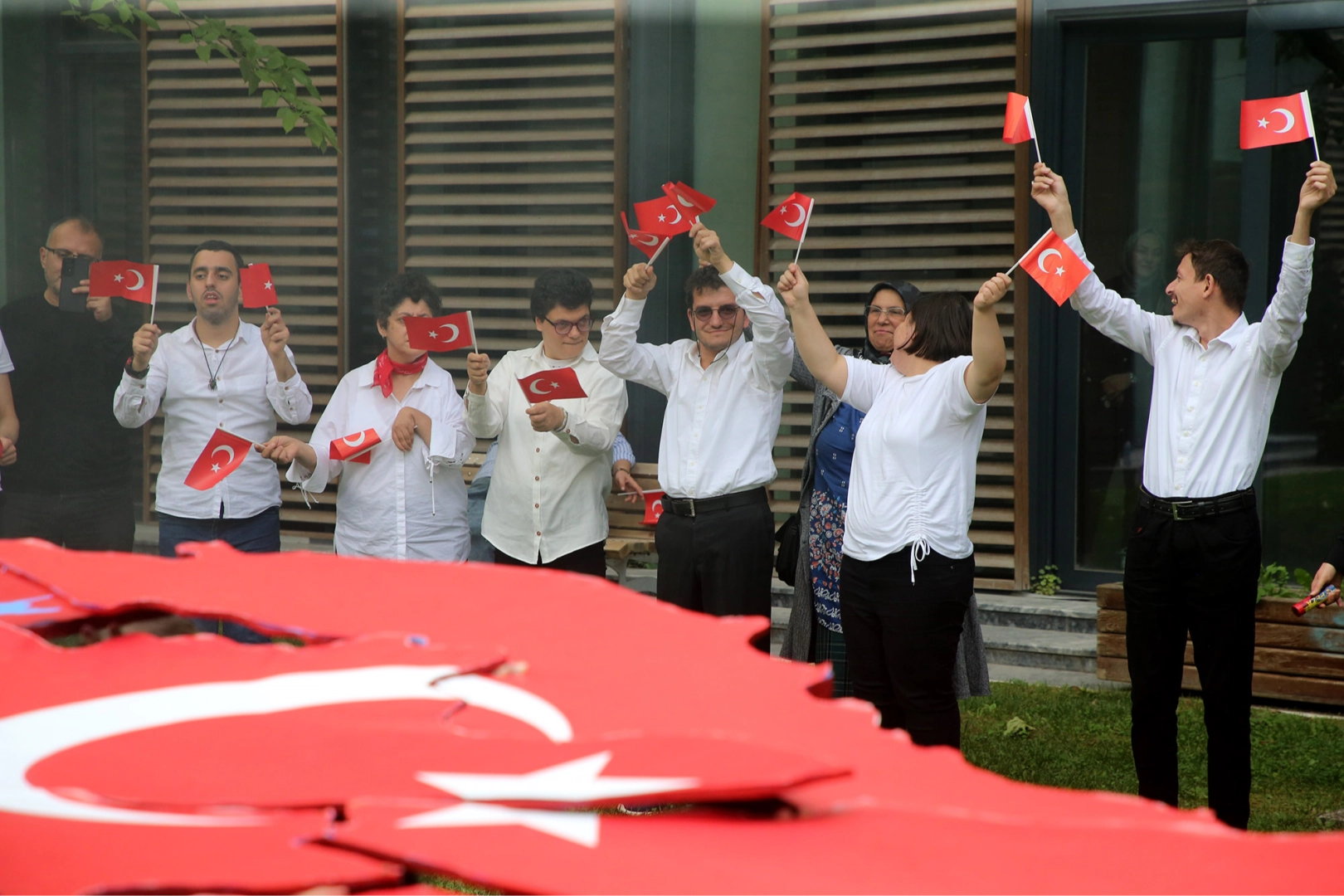 Engelsiz Hobi Kursu öğrencileri Cumhuriyet’in bir asrı devirdiği günlerde ‘kırmızı ve bayazla’ süslenen harika bir gösteri yaptı. Ay yıldızlık bayrak açıldı, kırmızı ve beyaz meşaleler yakıldı, Türkiye haritasının parça parça birleştirildiği bir gösteri düzenlendi ve zafer marşları söylendi. Yapılan gösteride Türkiye’nin toprak bütünlüğünün manevi değerine dikkat çekildi.