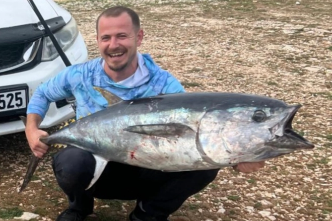 Erdoğan DEMİR/ Keşan Postası (EDİRNE İGFA) Edirne'nin Keşan ilçesine bağlı Saros Körfezi’ndeki İbrice Limanı’nda kıyıdan olta ile avlanan Keşan Belediyesi çalışanı amatör balıkçı Ufuk Çakır (33), büyük bir sürprizle karşılaştı. Çakır, 130 santimetre uzunluğunda, 30 kilo ağırlığında bir orkinos yakalayarak kendi rekorunu kırdı.