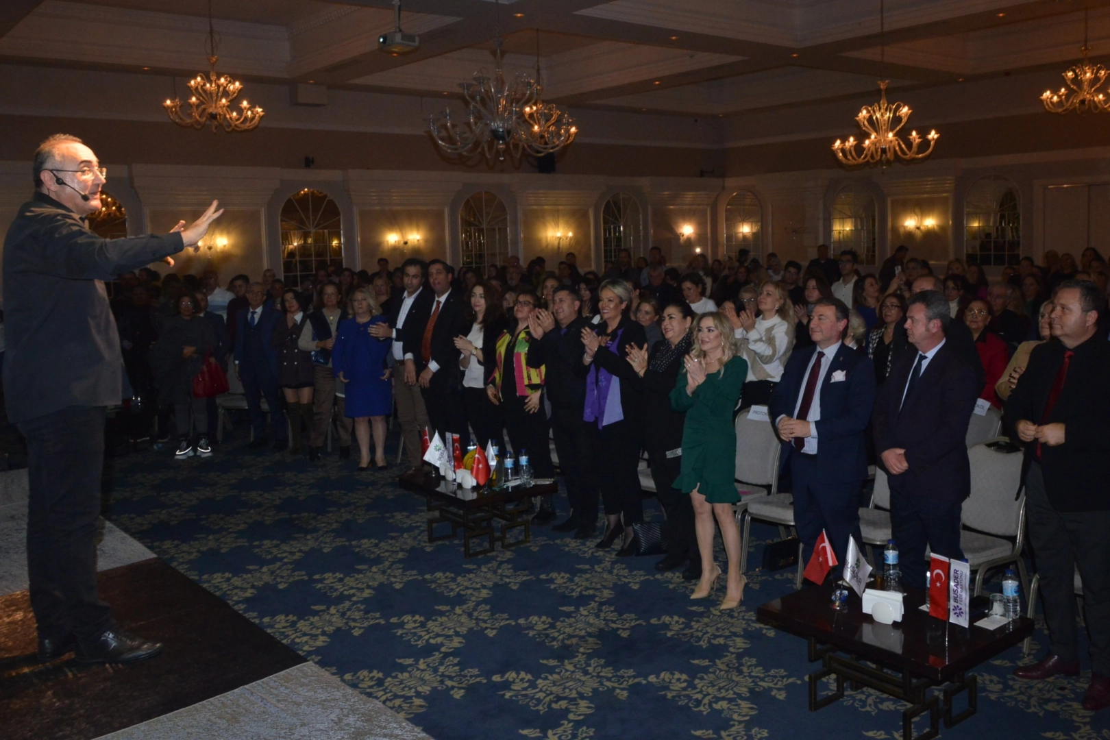 Türkiye'nin modern meddahı Sunay Akın, Podyum Davet’teki "Yüz Yüze" isimli gösterisiyle kültürümüzün unutulmaya yüz tutan değerlerine, bilginin ışığı altında tanıklık ettirdi. BUSADER üyelerinin yanısıra şehirdeki çeşitli sivil toplum örgütlernin başkan ve üyeleri ile Bursalılardan büyük ilgi gören Sunay Akın, gösterinin sonunda BUSADER Federasyonu Başkanı Zerrin Özgüle ve Bursa BUSADER Başkanı Tülin Günbatılı tarafından bir plaketle ödüllendirildi. Etkinlik Bursa BUSADER’in sağladığı eğitim bursları yararına gerçekleştirildi.