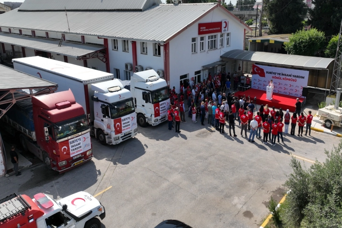 Bugün nasip olursa insani yardım tırlarımızı, hijyen malzemelerimizi, destek bekleyen, sıkıntıları olan Suriye’deki mazlumlara ve mağdurlara, ihtiyaç sahiplerine ulaştırmak üzere yola çıkarıyoruz. Suriye’de uzun süren savaş dönemi sona erdi. Milletimizin, Türkiye’mizin, Kızılay’ımızın merhamet eli sürekli üzerlerinde olacak. Adana Büyükşehir Belediyesi’ne ve katkı sağlayanlara müteşekkiriz. Yardımlarımız çeşitlenerek devam edecek. Amacımız yaraya merhem olmak. Bir yardım yaparken büyüklerimizden öğrendiğimiz gibi renk körüyüz. Mağdur, mazlum ve ihtiyaç sahibi varsa, onların yarasına merhem olmayı şiar edindik.”