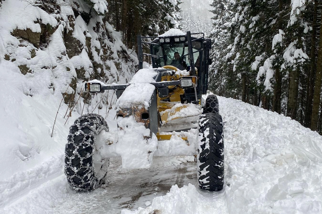 122 personelimiz 100 iş makinesiyle karla mücadele çalışmalarını aralıksız sürdürmektedir. Araçlarıyla trafiğe çıkan vatandaşlarımızın kış lastiği ve zincir kullanmalarını önemle rica ediyoruz."