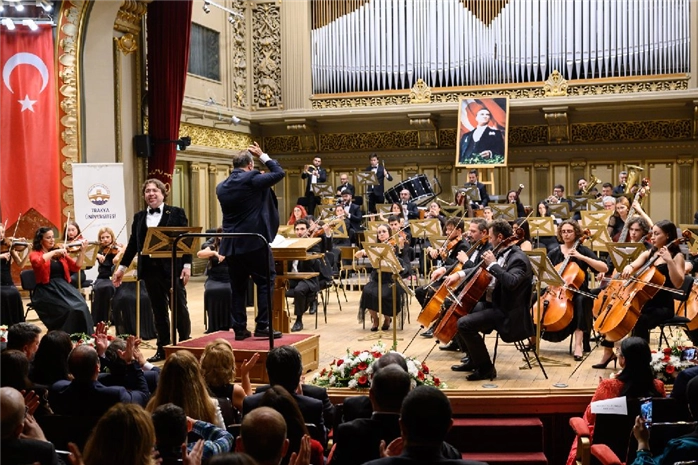 Prof. Sevil Ulucan Weinstein ve Bas Bariton Burak Bilgili’nin de misafir sanatçı olarak katıldığı konserde, Batı ve Doğu müziğine ait eserlerin yanı sıra türkü ve marşlarla Cumhuriyet Bayramı coşkusu doruğa çıktı.