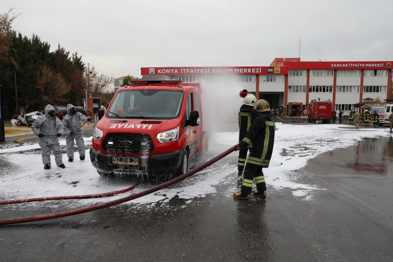 Acil Durum ve Afet Müdahale Eğitimleri Programı ( ADAMEP) kapsamında Konya İtfaiyesi Eğitim Merkezi’nde gerçekleştirilen tatbikat öncesi konuşan Konya Büyükşehir Belediyesi İtfaiye Daire Başkanı Cevdet İşbitirici, KBRN Okulu ve Eğitim Merkezi Komutanı Albay Yusuf Uysal’a destekleri için teşekkür etti.