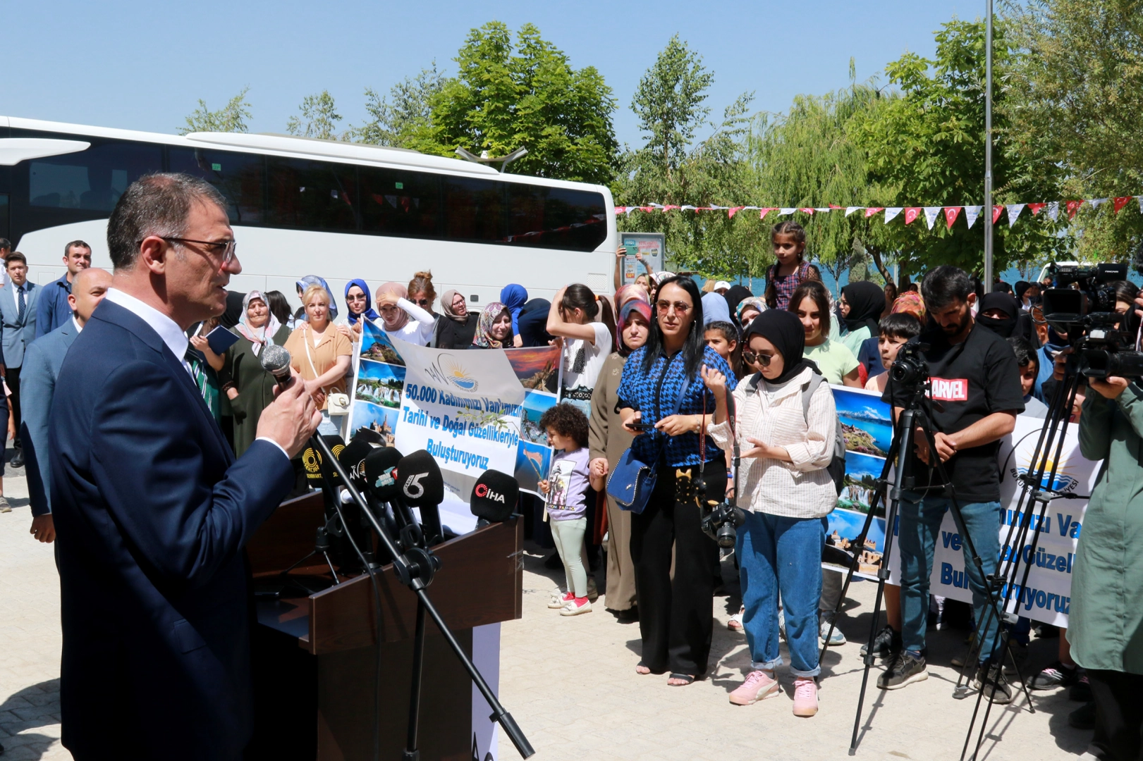 Van’ın doğasıyla, tarihiyle ve kültürüyle büyük bir zenginlik olduğunun altını çizen Vali Dr. Ozan Balcı, “Bugün güzel bir etkinlik için bir araya gelmiş bulunmaktayız. Malumunuz Van doğasıyla, tarihiyle, kültürüyle büyük bir zenginlik. Özellikle yaz aylarında görülmeye değer birçok doğal güzelliklerimiz var. Ayrıca Van'ın etrafında da çok güzel yerler mevcuttur. Yeni bir proje başlatıyoruz. İnşallah 50 bin kadınımızı, bu gezi programı çerçevesinde Van’ımızın tarihi ve doğal güzellikleriyle buluşturacağız. Bunu Büyükşehir Belediyesi olarak gerçekleştiriyoruz. İnşallah çok güzel ve verimli olacağını düşünüyorum. Van'ımızın doğal, tarihi güzelliklerini görmüş olacaklar. Bir değişiklik olmuş olacak. Bunu çok çok önemsiyorum. Bu projenin gerçekleştirilmesinde emeği geçen bütün Büyükşehir çalışanlarımıza da teşekkür ediyorum. Sizlere kolaylıklar diliyorum. Bu güzellikleri keşfetmenizi diliyorum. İnşallah kadınlarımız için daha çok güzel işler yapacağız. Hepinizi saygılarımı, sevgilerimi, hürmetlerimi sunuyorum. Allah'a emanet kalın” dedi.
