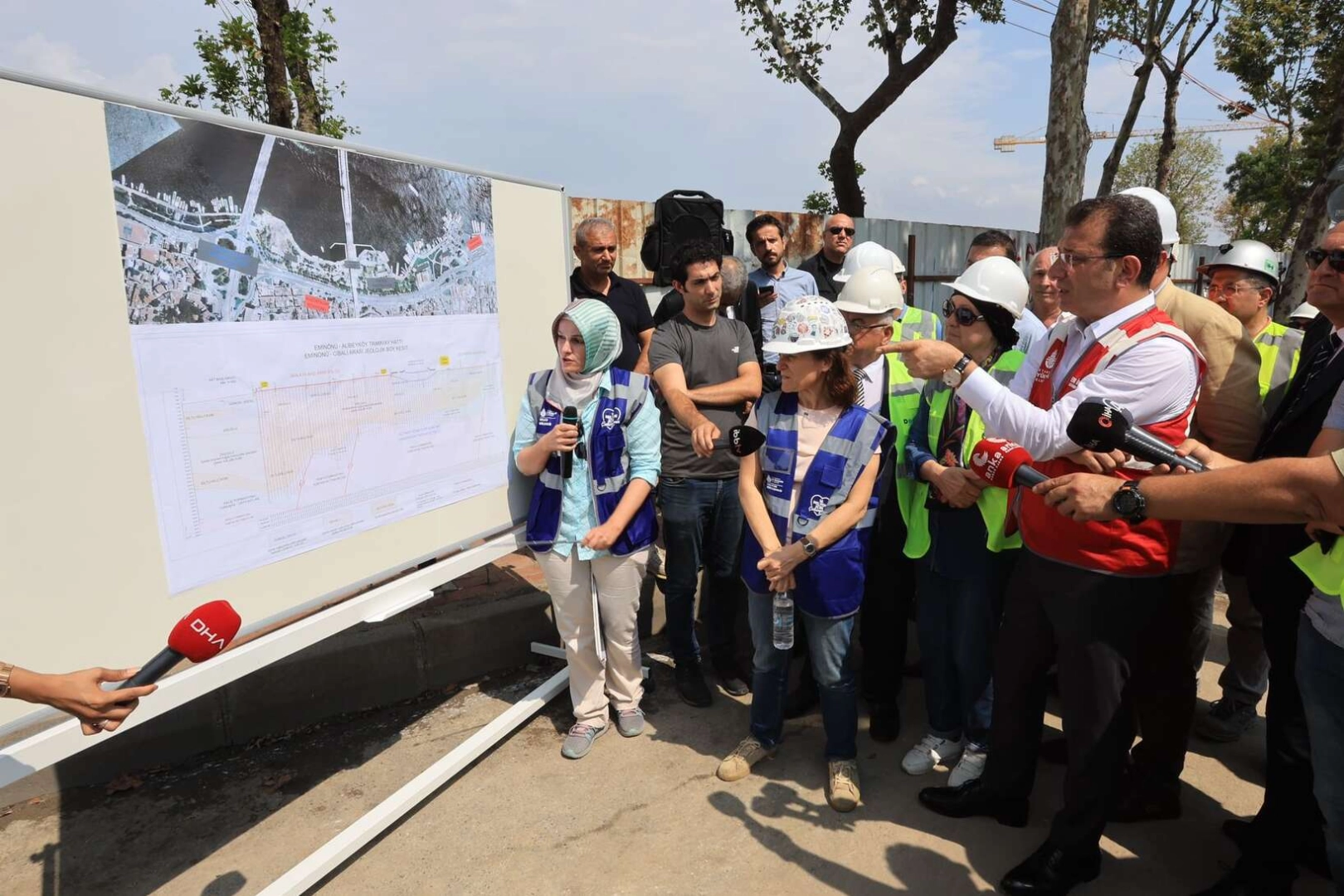 İBB Genel Sekreter Yardımcısı Pelin Alpkökin ve Avrupa Yakası Raylı Sistem Şube Müdürlüğü’nde Müdür Yardımcılığı görevini üstlenen Ülkü Ebru Yıldırım’ın eşliğinde şantiye çalışanlarıyla sohbet eden ve hatıra fotoğrafı çektiren Başkan İmamoğlu, projenin başlangıç talimatını verdi.