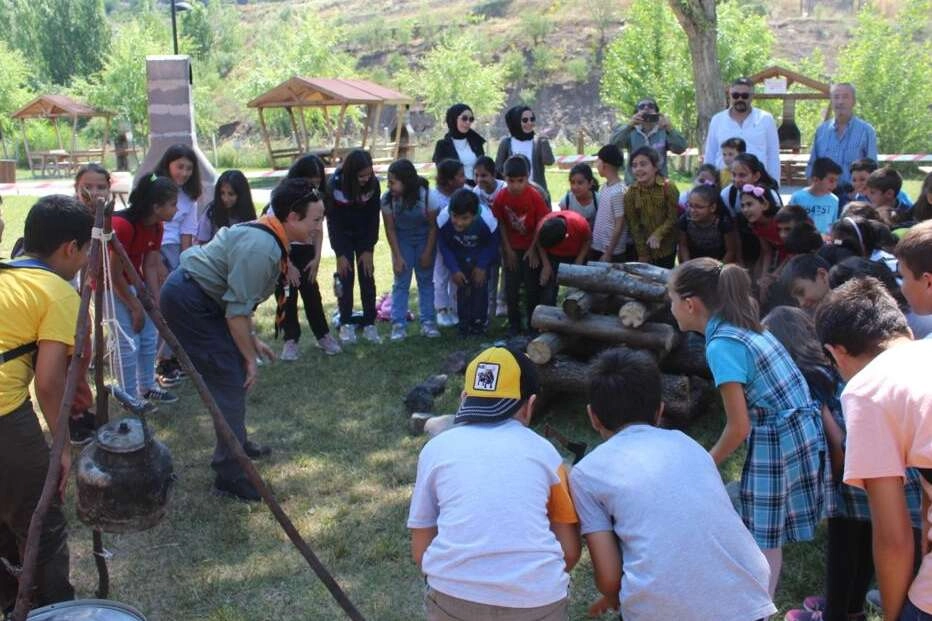 Çocuklar kurulmuş olan kamp alanını gezip, izcilikte kullanılan kamp ekipmanlarını inceleme fırsatı buldu.