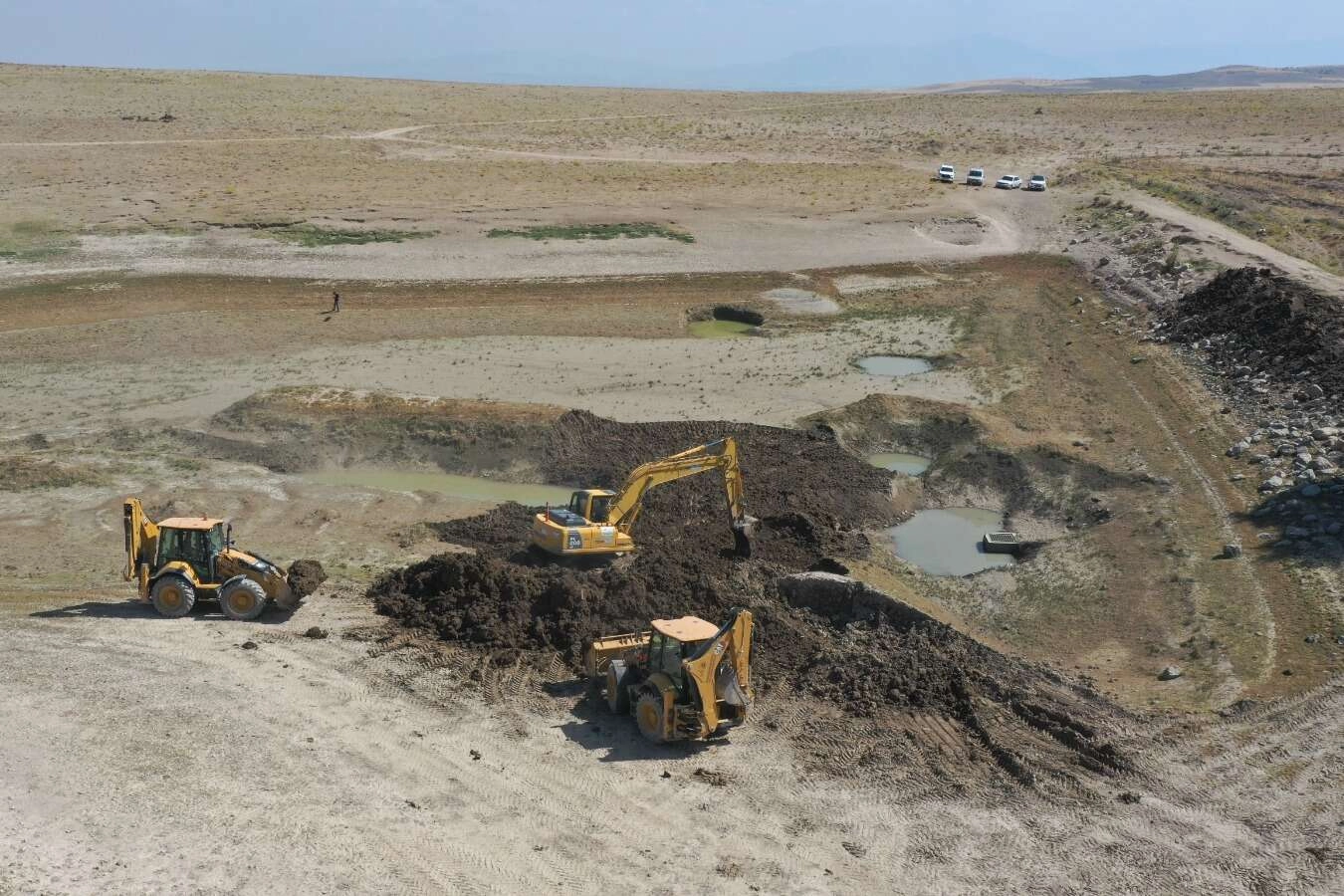 VAN (İGFA) - Van Büyükşehir Belediyesi Kırsal Hizmetler Daire Başkanlığı tarımsal sulama ve hayvan içme suyu göletlerinde temizleme, genişletme ve onarım çalışmalarını sürdürüyor. Tuşba ilçesine bağlı Mollakasım Mahallesinde kırsal arazilerde tarım ve hayvancılıkta kullanılmak üzere 1970’li yıllarda hizmete sunulan ve zamanla atıl duruma gelen gölet, Mahallelin talebi üzerine yürütülen çalışmayla yeniden aktif duruma getiriliyor. Belediye ekiplerince sulama kanalı ve gölet içerisinde biriken balçık temizlenip onarılıyor. Yaklaşık 1 hafta sürecek çalışmayla gölet içerisinden çıkan killi toprakla da su sızmalarının da önüne geçilecek.