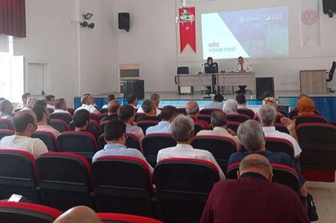 Okul müdürleri ve kurum personelinin katılımı ile gerçekleştirilen toplantıda, göç yönetimi ile ilgili var olan yanlış algı ve bilgilerin giderilmesi amacıyla uygulanan politikalar anlatıldı.