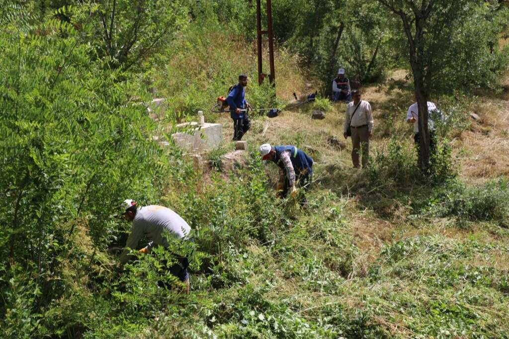 Kurban Bayramı sebebiyle şehrin en çok ziyaret edilen bölgelerinden olan mezarlıklarda da gerekli tedbirleri alan Bitlis Belediyesi vatandaşların rahat ve huzur içinde ziyaretlerini gerçekleştirmesi için çalışmalarına hız verdi. Bu kapsamda Bitlis Belediyesi Mezarlıklar Müdürlüğü tarafından kent genelinde bulunan mezarlıklarda yürütülen bakım ve temizlik çalışmaları düzenli olarak yapılarak, Kurban Bayramı’nda vatandaşların ziyaretine hazır hale getirildi.