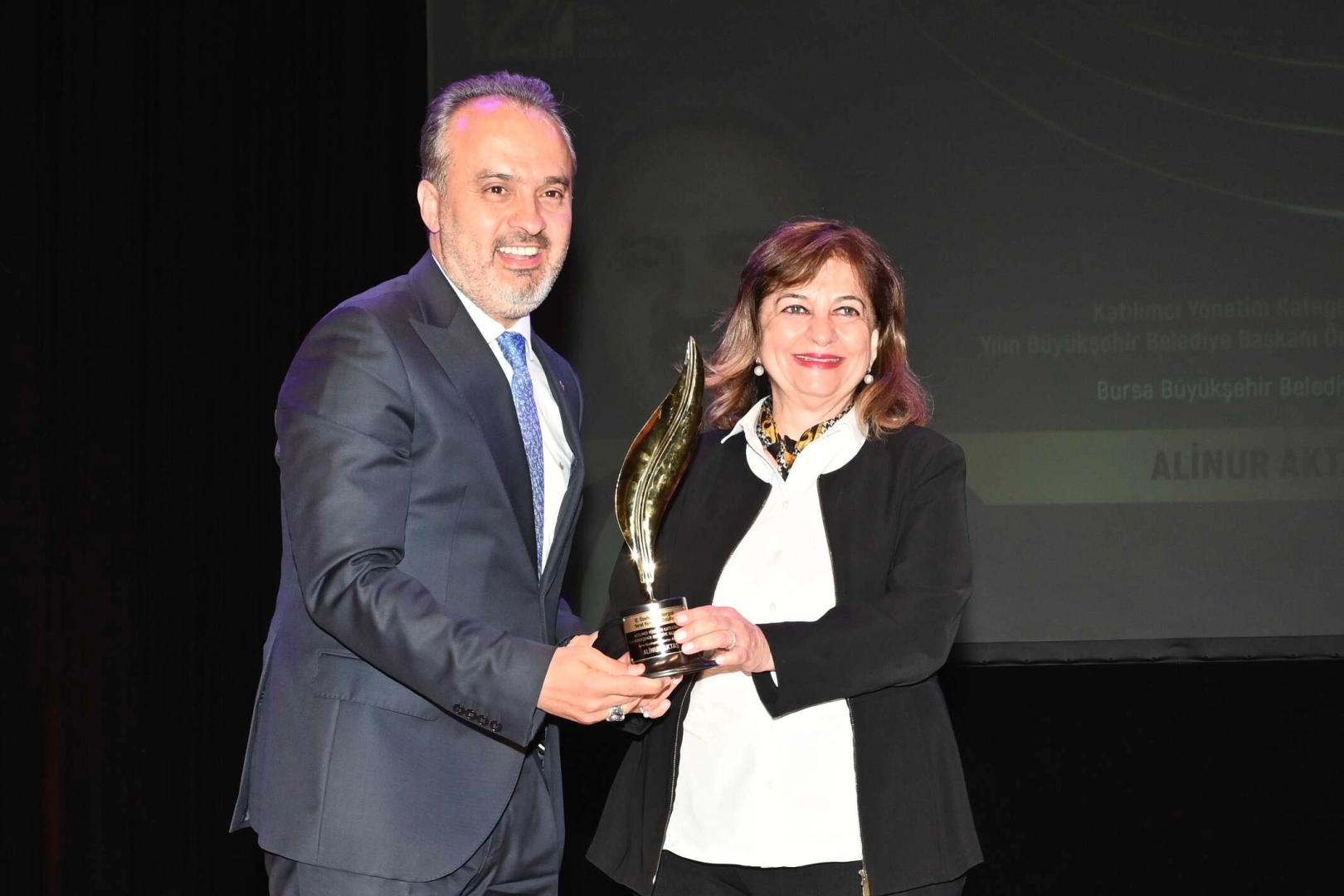BURSA (İGFA) - Bursa’da göreve başladığı ilk günden itibaren hayata geçirilecek projelerde ortak aklı devreye alan ve kent dinamikleri ile işbirliği halinde hareket eden Büyükşehir Belediye Başkanı Alinur Aktaş, 12. Özel Kalem Dergisi Yerel Yönetim Ödül gecesinde Katılımcı Yönetim kategorisinde ‘Yılın Büyükşehir Belediye Başkanı’ seçildi.
