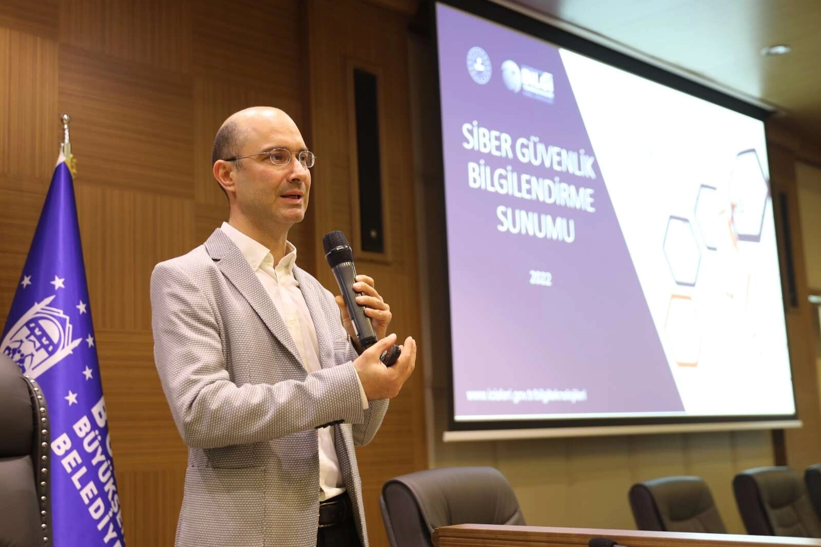 BURSA (İGFA) - Bursa Büyükşehir Belediyesi meclis salonunda gerçekleştirilen eğitimde, İçişleri Bakanlığı Bilgi Teknolojileri Genel Müdürlüğü’nden Genel Müdür Yardımcısı Kayıhan Altınöz, Siber Güvenlik Şubesi Takım Lideri Doğan Elmacıoğlu ve Siber Güvenlik Uzmanı Yasin Gökhan Taşkın, belediyelerin siber güvenlik dayanıklılığını artırmak adına alınması gereken tedbirleri anlattı.