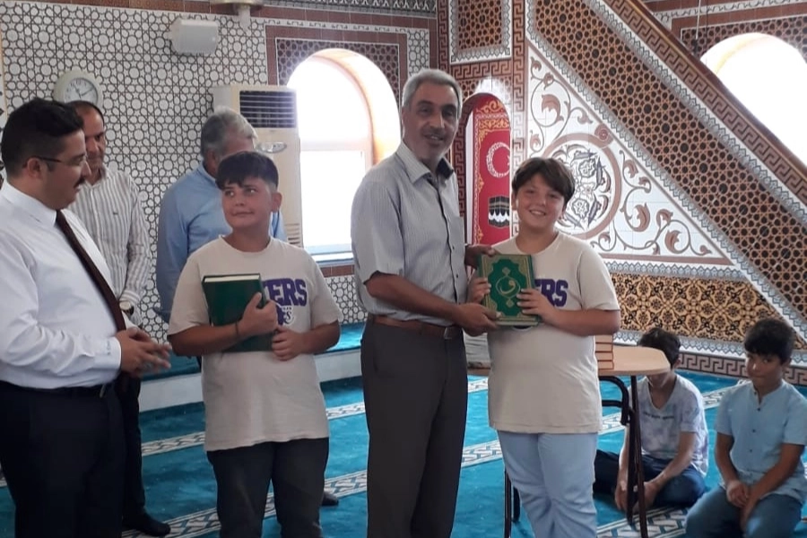 Program sonunda hediyelerini de alan öğrenciler yaz kurslarında emeği geçen din görevlilerine teşekkür ettiler.