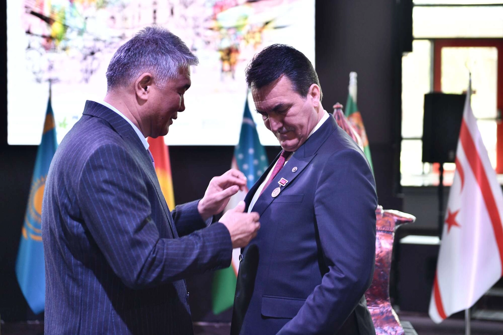 BURSA (İGFA)- Orta Asya’da yer alan Türk Devletleri ile kardeşlik bağlarını kuvvetlendirerek Türk dünyasının kültürel bütünleşmesi adına ciddi katkılar koyan Osmangazi Belediye Başkanı Mustafa Dündar, TÜRKSOY tarafından önemli bir ödüle layık görüldü. Her yıl düzenlenen Osman Gazi’yi Anma ve Bursa’nın Fethi Şenlikleri’nde fetih coşkusunu tüm Türk coğrafyasına yayan, Türk dünyası ülkeleri ile kardeş şehir protokolleri imzalayarak ilişkileri kuvvetlendiren Osmangazi Belediye Başkanı Mustafa Dündar’a TÜRKSOY Genel Sekreteri Sultan Raev tarafından Panorama 1326 Bursa Fetih Müzesi’nde Cengiz Aytmatov Madalyası verildi.