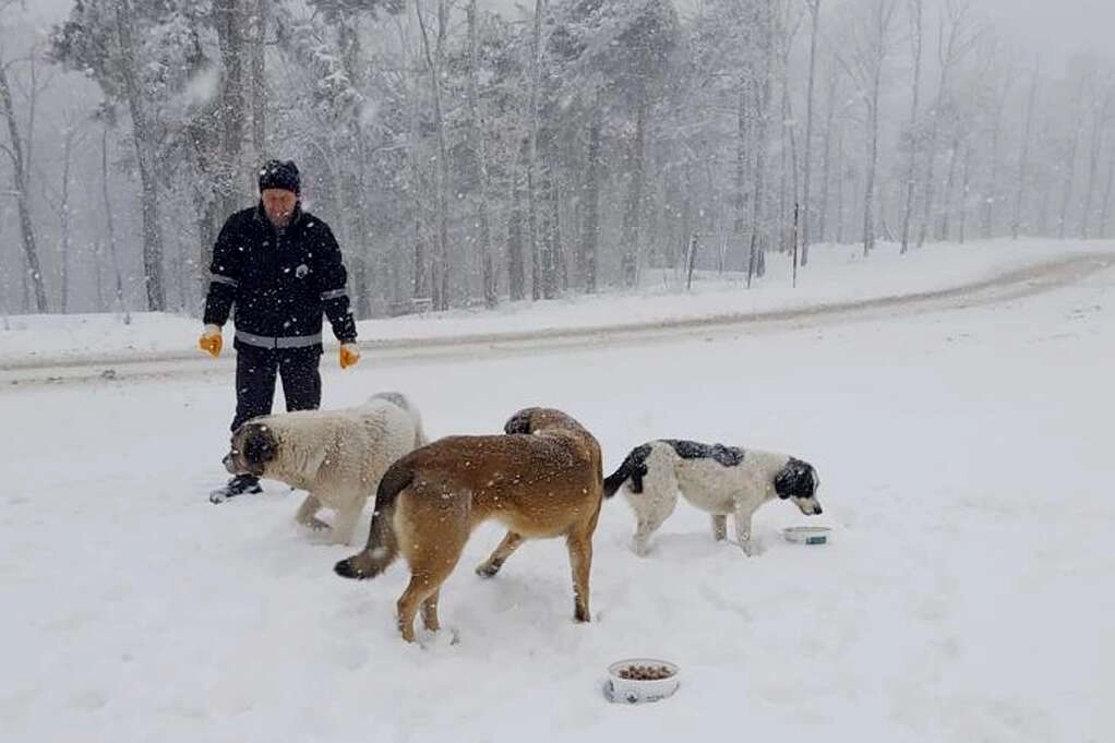 BURSA (İGFA)- Osmangazi Belediyesi Çevre Koruma ve Kontrol Müdürlüğü ekipleri, ilk kar yağışının düştüğü günden itibaren Uludağ’daki can dostları yalnız bırakmıyor. Ekipler, sahipsiz hayvanların aç kalmamaları adına yol boyunca belirli noktalara haftanın üç günü kuru mama bırakıyor. Karla kaplı beyaz cennette yiyecek bulmakta zorlanan hayvanlar, ekipler tarafından bırakılan kuru mama ile beslenerek, kış aylarında beslenme sıkıntısı çekmiyor. Kar yerden kalkana kadar can dostlar enerjisi yüksek mamalar ile besleniyor.