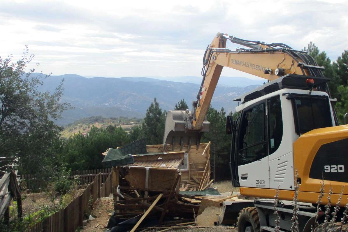 BURSA (İGFA) -Kaçak yapılaşmaya karşı kararlı ve etkin bir mücadele ortaya koyan Osmangazi Belediyesi, kent merkezinin yanı sıra kırsal bölgelerde de imara uygun olmayan kaçak yapılar tespit ederek yıkımını gerçekleştiriyor.