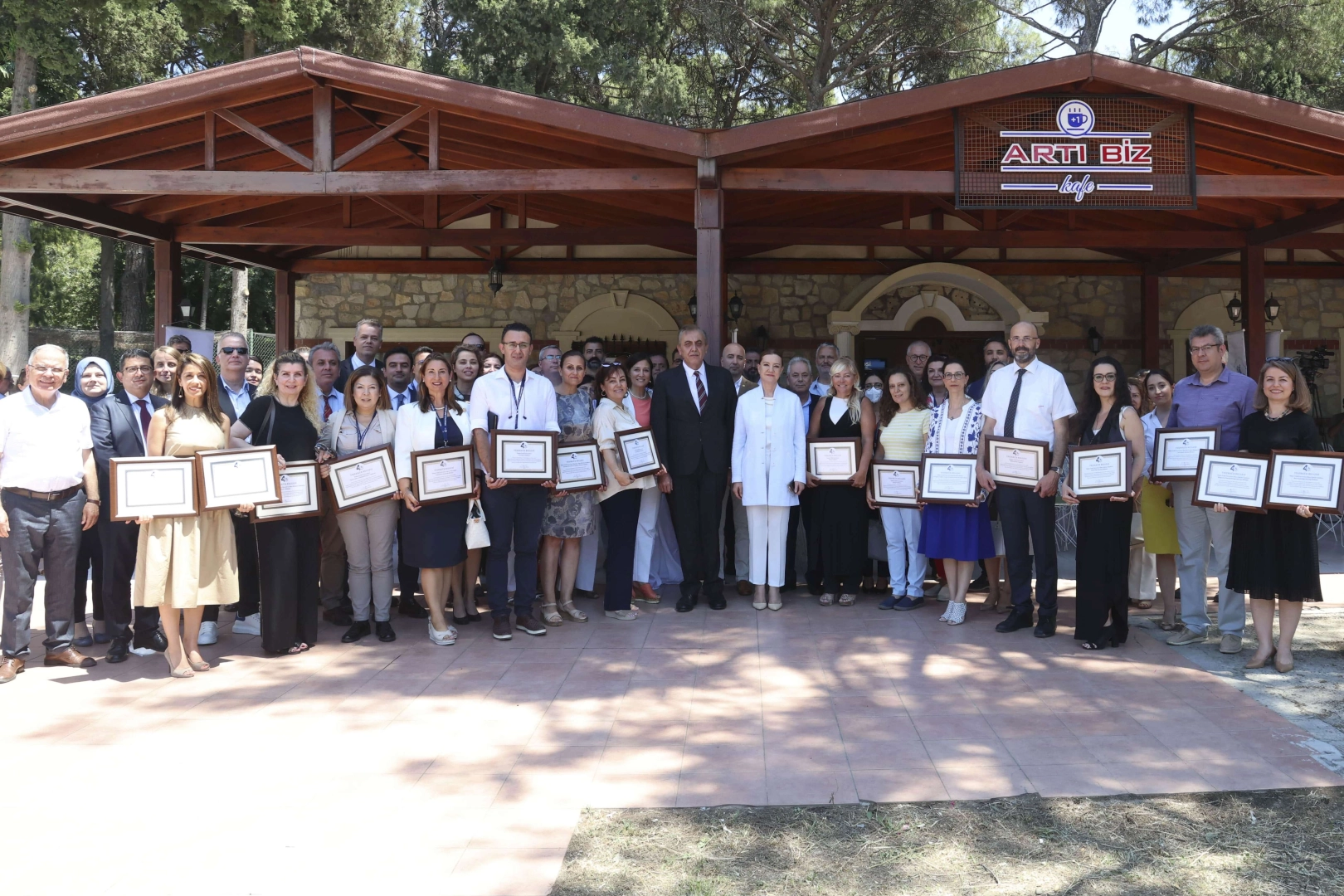 Konuşmaların ardından teşekkür belgesi takdim törenine geçildi. YÖK’ten bayrak alan Ağız ve Diş Sağlığı Uygulama ve Araştırma Merkezi, Buca Eğitim Fakültesi, Fizik Tedavi ve Rehabilitasyon Fakültesi, Hemşirelik Fakültesi, Hukuk Fakültesi, Mühendislik Fakültesi, Sosyal Bilimler Enstitüsü ve Veteriner Fakültesine teşekkür belgeleri verildi.