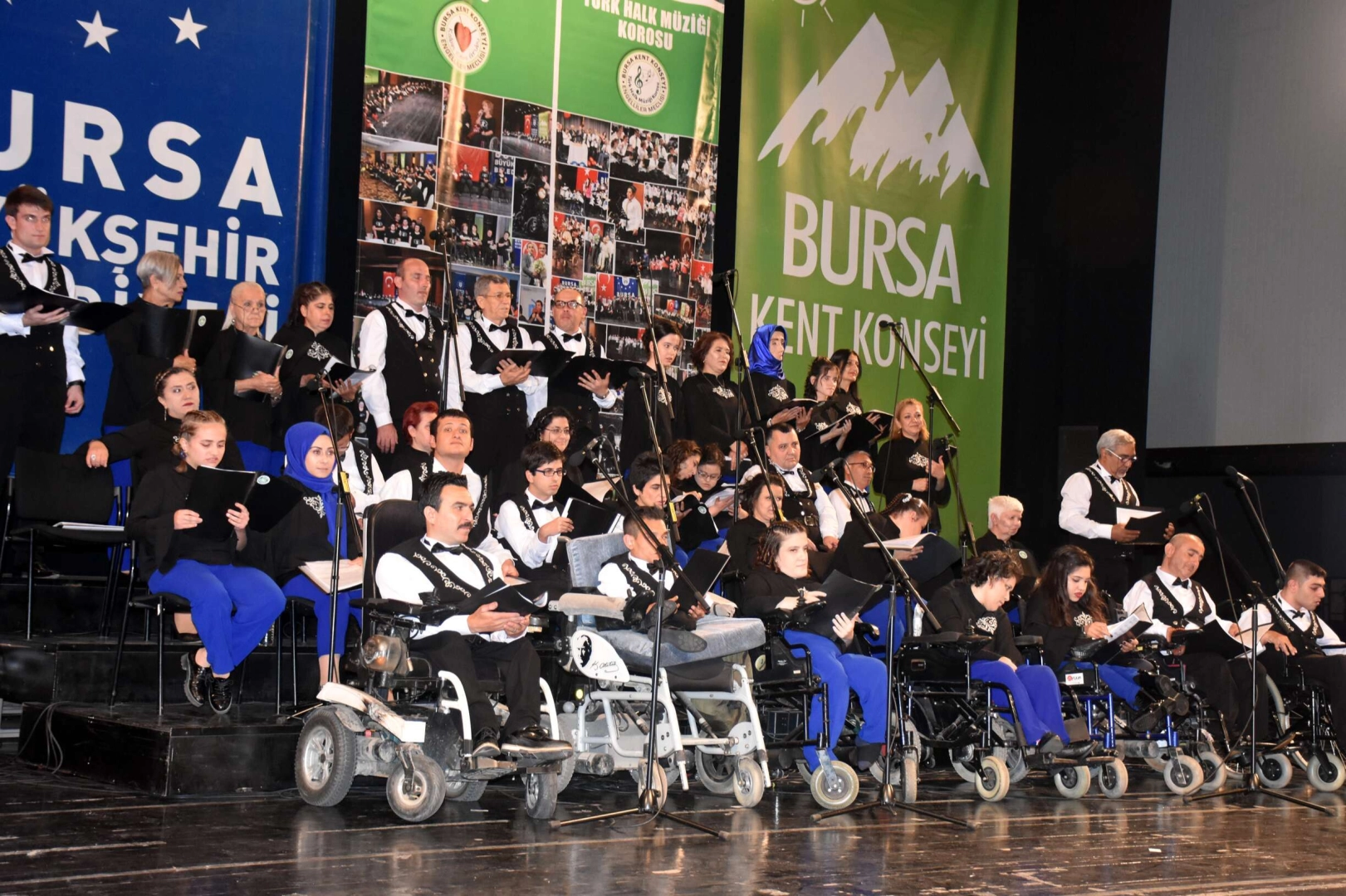 Konserin son bölümde ise Türk Halk Müziği Korosu, Şef Kemal Kamalı yönetiminde sahneye çıktı. Büyükşehir Belediyesi Orkestra Şube Müdürlüğü ekibinin eşlik ettiği konserde, Engelliler Meclisi üyeleri tarafından solo ve koro şarkılar seslendirildi. Sahne alan solistler, ‘Bir fırtına tuttu bizi’, ‘Gemilerde talim var’, ‘Yüksek yüksek tepelere’ ve ‘Altın hızma mülayim’ gibi Türk Halk Müziği’nin önemli eserlerini sanatseverlerle birlikte söyledi.