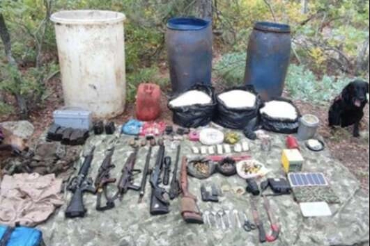 HATAY (İGFA) - Hatay İl Jandarma Komutanlığı ve İl Emniyet Müdürlüğü tarafından yapılan açıklamada, "Jandarma Komando, Polis Özel Harekat ve Güvenlik Korucusu Timlerinin katılımıyla müşterek icra edilen, Şehit Jandarma Er Ahmet ÇERÇİ operasyonu kapsamında, Arsuz ilçesi Kurtbağı mahallesi kırsalında yapıla. arazi araması neticesinde 4 depo tespit edildi. Depolar içerisinde; 2 adet AK-47 Kalaşnikov piyade tüfeği, 1 adet M16 piyade tüfeği,1 adet tabanca,2 adet av tüfeği,4 adet savunma tipi el bombası, 18 adet piyade tüfeği şarjörü,660 çeşitli çapta ve ebatta fişek, 1 adet EYP,4 adet EYP komuta kumandası, 2 adet EYP komuta sistemi,8 adet elektrikli fünye,2 kg. dinamit lokumu,1 adet ateşleme anahtarı,202 kg. amonyum nitrat gübre,1 adet elektronik devre kartı,1 adet büyük telsiz,1 adet gece görüş dürbünü,1 adet gündüz görüş dürbünü ve çok miktarda yaşam malzemesi ele geçirildi" denildi.