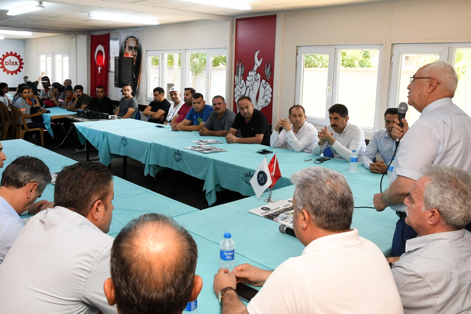 Sendika Şube Başkanı Kara'nın konuşmasının ardından tüm katılımcıların bayramını kutlayan Karabağlar Belediye Başkanı Muhittin Selvitopu, ana hizmet binasındaki çalışanların da bayramını kutlayarak, “Karabağlar Belediyesi istikrarlı bir yapıya kavuştu. Sizlerin alınteri ve emekleriyle daha da iyi noktalara gelecek. Hep birlikte kişilerin değil toplumun çıkarı için çalışmayı sürdüreceğiz” dedi.