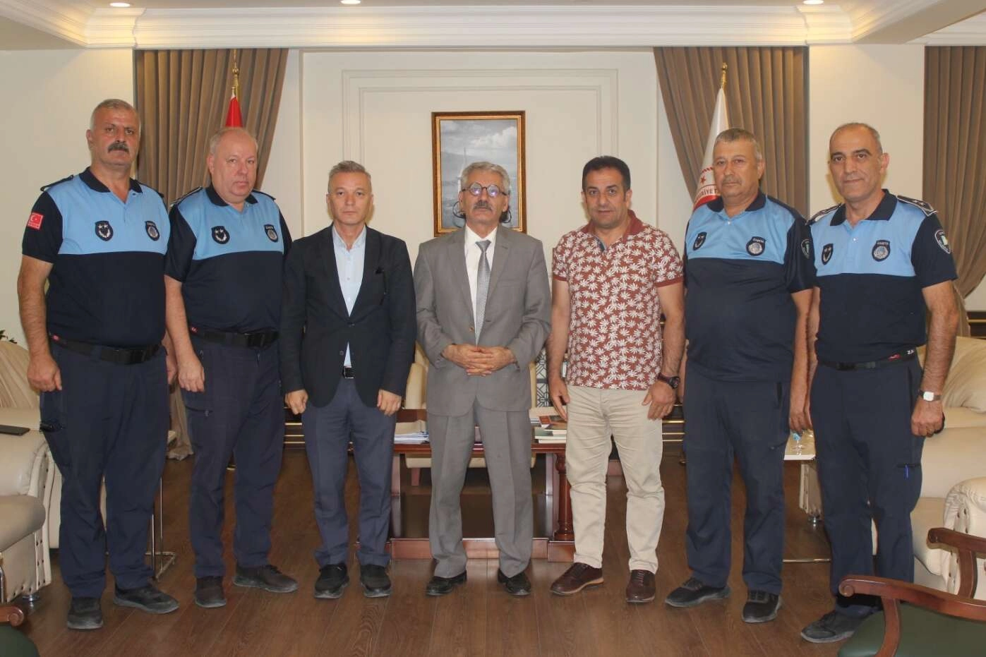 KOCAELİ (İGFA) - 1-7 Eylül Zabıta Haftası ve Zabıta Teşkilatı’nın 196. kuruluş yıl dönümü sebebiyle İzmit Belediyesi Zabıta Müdürü Ümit Fındık, zabıta personeli ve Spor İşleri Müdürü Mithat Ağa İzmit Kaymakamı Yusuf Ziya Çelikkaya’yı makamında ziyaret etti.