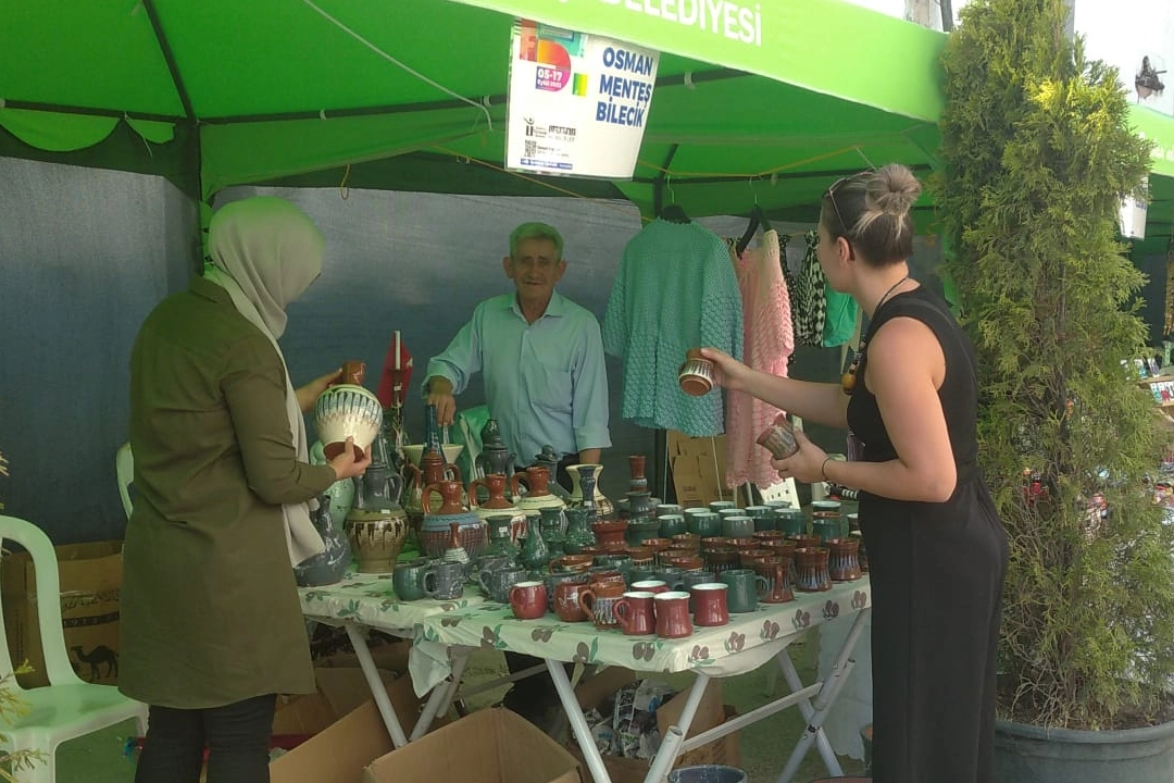 Pazaryeri Gündem / BİLECİK (İGFA) - Tepebaşı Belediyesi'nin öncülüğünde Hisarlar, Kılıçoğlu ve ETİ'nin ana sponsorluğunda, Anadolu Üniversitesi ve birçok kuruluşun da desteğiyle sürdürülen Uluslararası Eskişehir Pişmiş Toprak Sempozyumu, birçok sanat dalını sanatseverler ile buluştururken Kınık Köyünde 52 yıllık çömlek ustası Osman Menteş’in standı ilgi görüyor.
