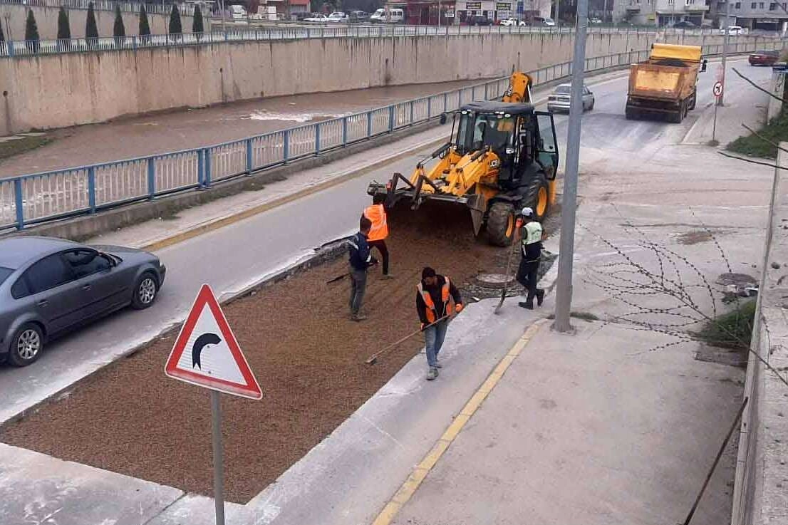 Tarihi İzmit Çınarlı Camii önündeki kaldırımları yapan Yol Bakım Timi, Derince Nihat Erim Caddesi, Çayırova Bayramoğlu Caddesi, Gölcük Ömer Seyfettin ve Zeynel Ağa caddelerinde asfaltlama çalışması yapıldı. İklim koşulları veya ağır tonajlı araç geçişleri sebebiyle meydana gelen bozulmaları hızlı bir şekilde onarım yaparak gideren Yol Bakım Timi, trafiği de aksatmadan gerekli güvenlik önlemlerini alarak asfalttaki bozulmayı veya yol ve kaldırımlardaki deformasyonları hızlı bir şekilde gidererek yolu kullanılabilir hale getiriyor. Asfalttaki bozuk kısım trimer kazısı ile kazınıp sökülmesi sonrası bozulma olan kısım sıcak asfaltla kaplanarak silindir ile sıkıştırılıyor.