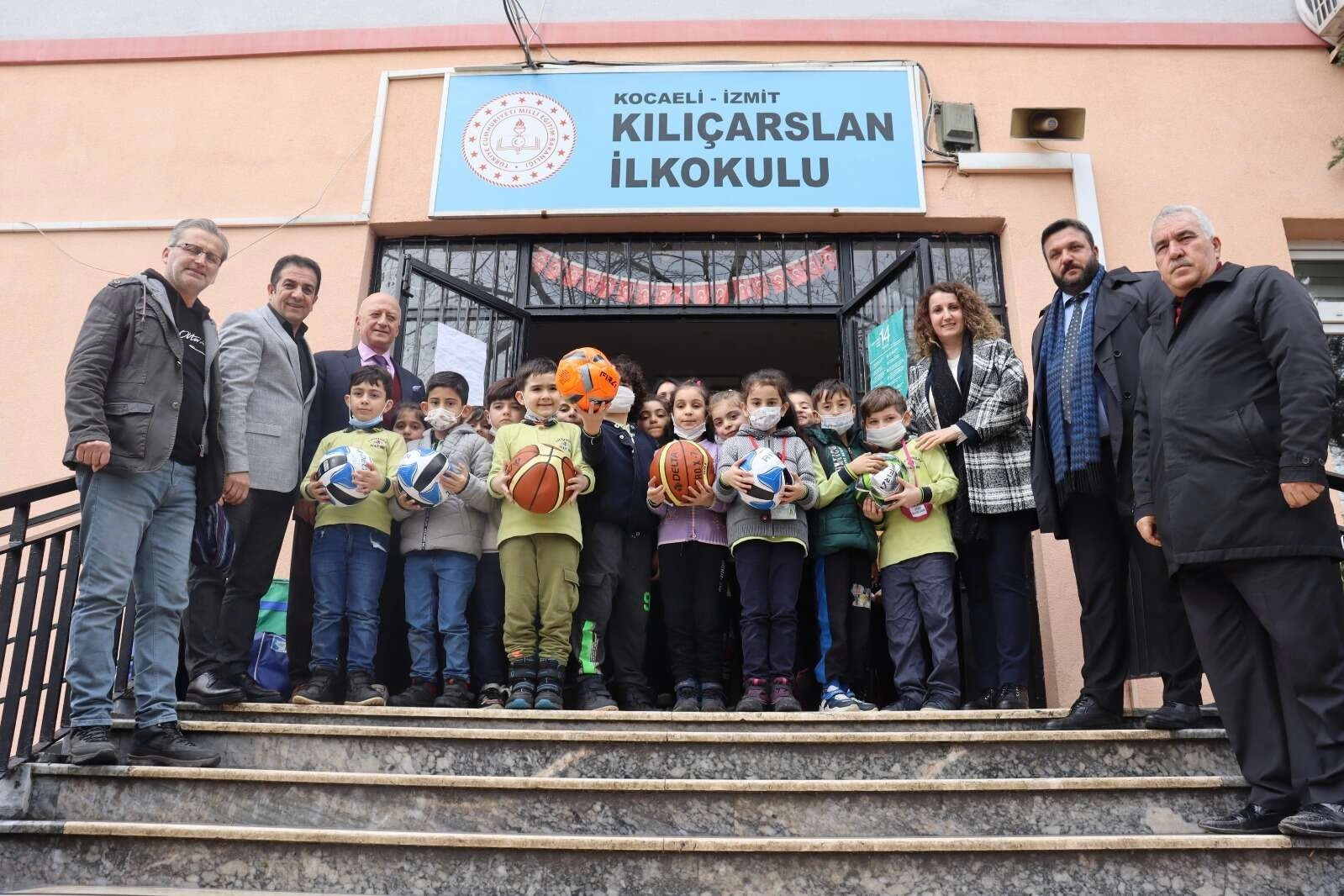 İzmit Belediyesi Spor İşleri Müdürlüğü’nün Kılıçarslan İlkokulu ve Ortaokulu’na spor malzemesi desteğine İzmit Belediyesi Başkan Yardımcısı Dilek Yalçın, İzmit Belediyesi Spor İşleri Müdürü Mithat Ağa, İzmit Belediyesi Meclis Üyesi Tuncay Aşkın, İzmit Belediyesi STK ve Esnaf Masası Koordinatörü Nurullah Özer ve İzmit Belediyesi Muhtar Hizmet Masası Komisyon üyesi Ercan Umutlu eşlik etti. Okul yönetimi İzmit Belediyesine desteklerinden dolayı teşekkür etti.
