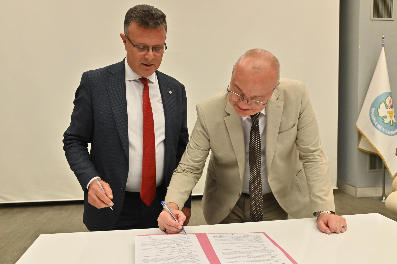 MANİSA (İGFA) - Manisa Büyükşehir Belediyesi, ilçe belediyeleri ile işbirliği yapmaya devam ediyor. Bu kapsamda Manisa Büyükşehir Belediye Başkanı Cengiz Ergün ile Alaşehir Belediye Başkanı Ahmet Öküzcüoğlu arasında tarımsal sulama sondajı noktasında işbirliği protokolü imzalandı.