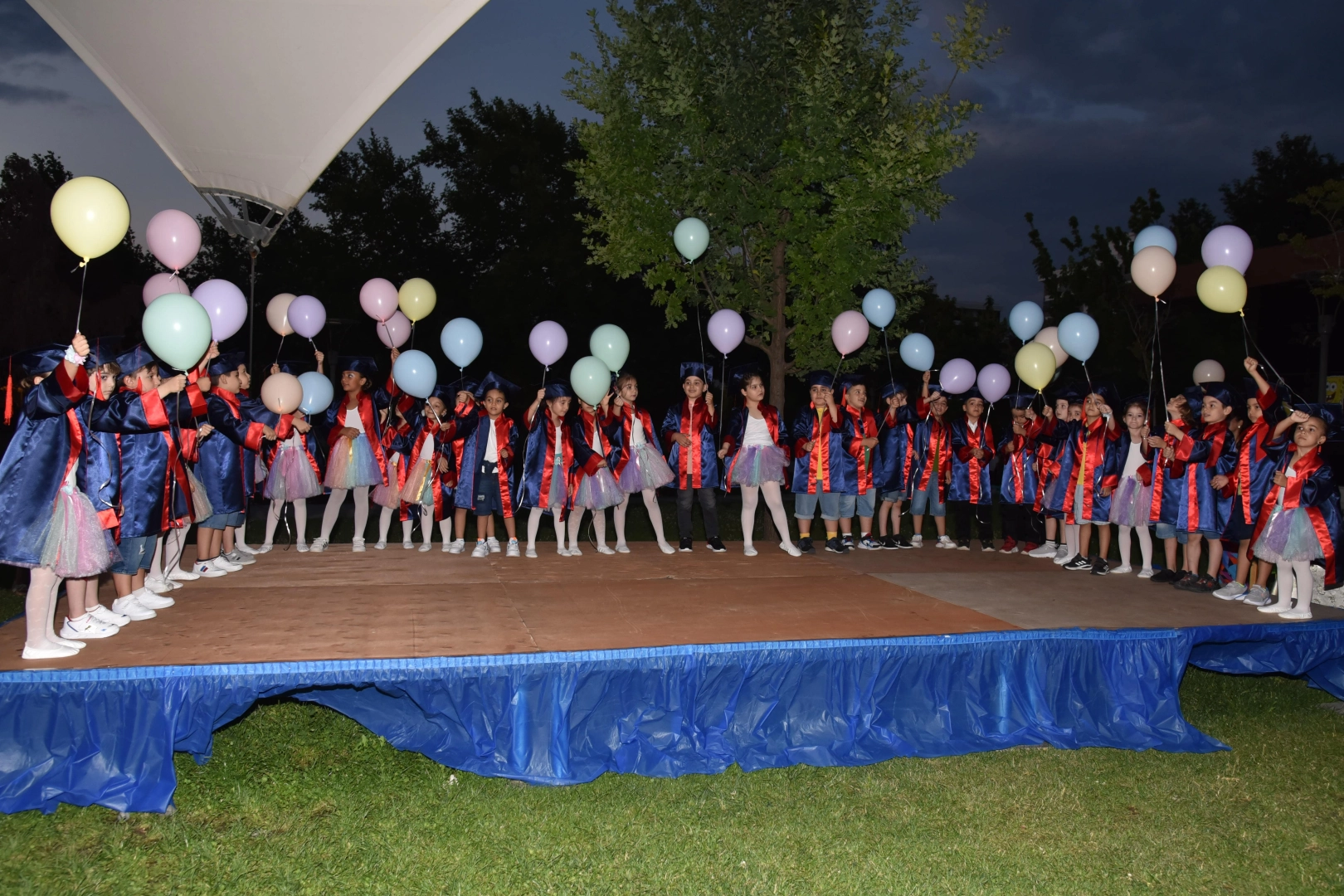 33 minik öğrenci için düzenlenen mezuniyet töreninde Minik Yıldızlar Sınıfı ve Yağmur Damlaları Sınıfı öğrencileri art arda modern dans gösterileri sahneledi.