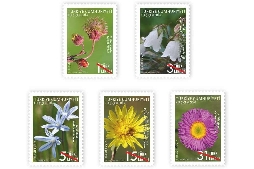 İSTANBUL (İGFA) - PTT AŞ tarafından “Mübarekotu, Yuvarlak yapraklı çançiçeği, Sümbülcük, Carolina çöl hindibası, Yıldızpatı” görsellerine yer verilerek hazırlanan 5 değerli “Kır Çiçekleri-2” konulu resmî posta pulları 21 Mart 2022 tarihinde tedavüle sunuldu.