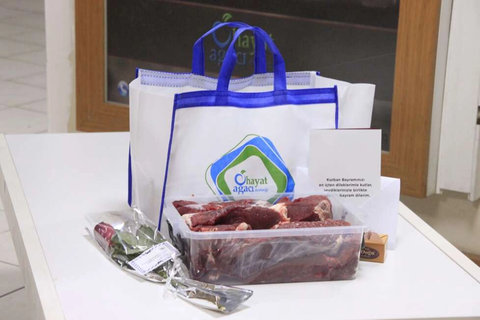 Hayat Ağacı Derneği’ne bağışlanan kurban etleri sayesinde Gıda Bankasından yardım alan ihtiyaç sahipleri, yılın 12 ayında, aldıkları gıda ürünlerinin yanı sıra, limitleri dışında tercihlerine göre kemikli veya kemiksiz kurban eti alabilecekler.