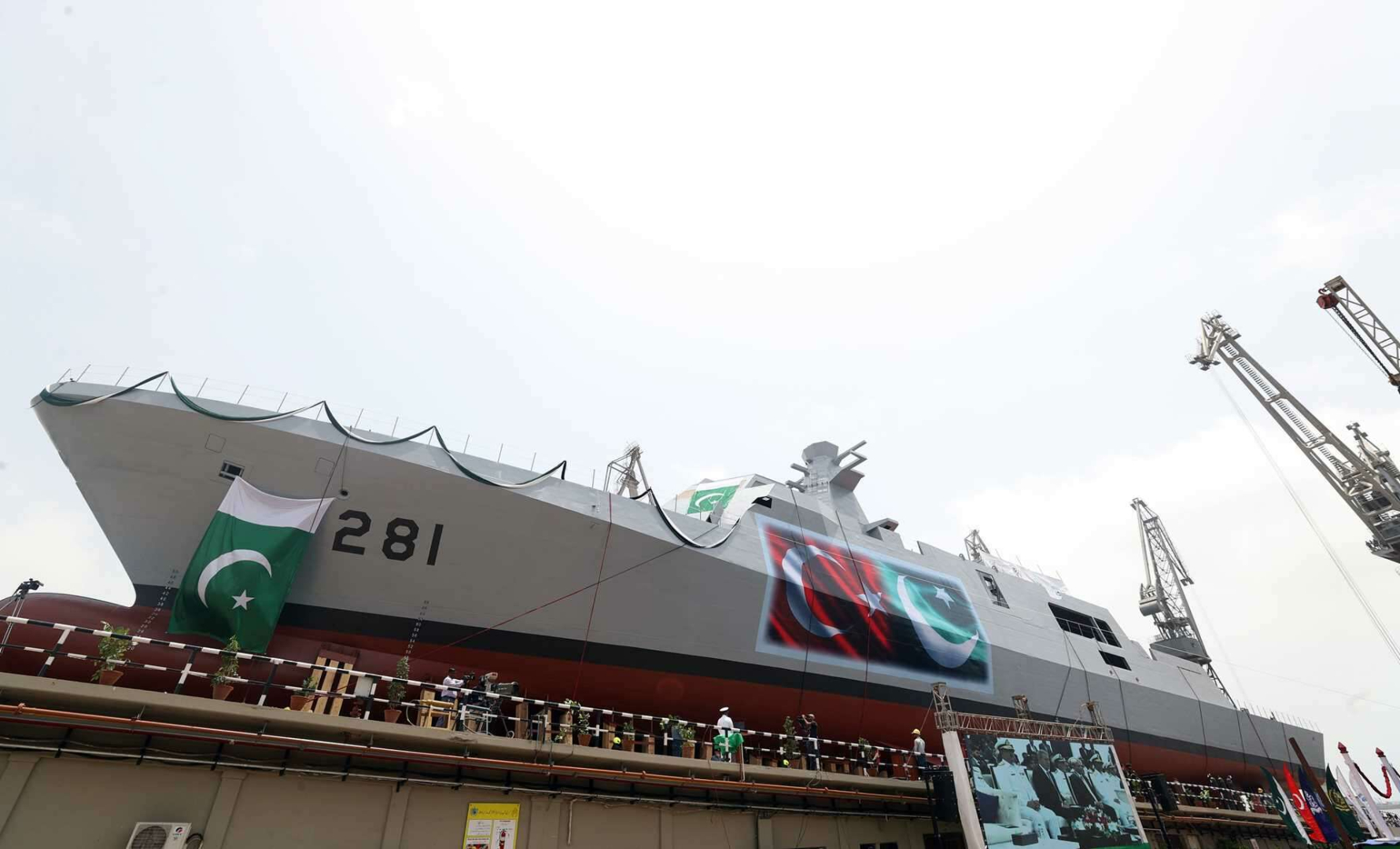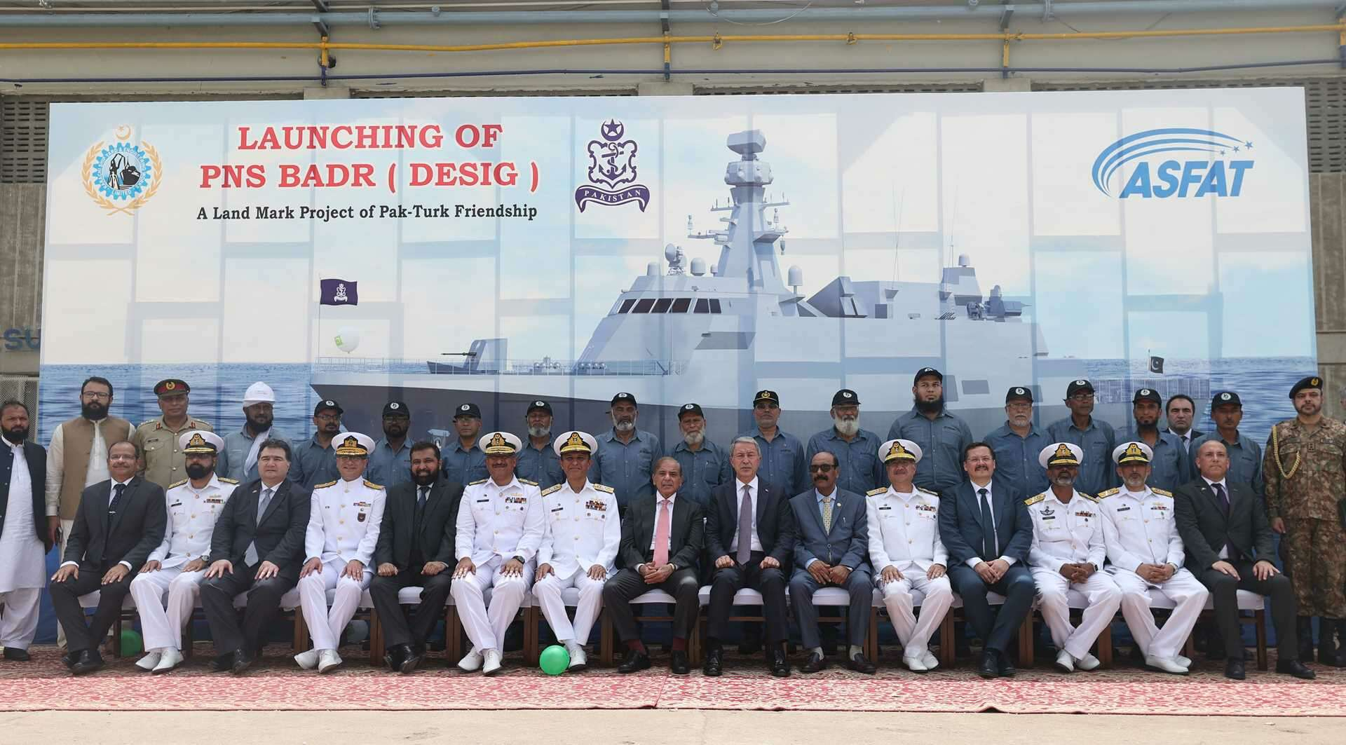 Pakistan MİLGEM Projesi'nin Üçüncü Gemisi Badr, Millî Savunma Bakanı Hulusi Akar ve Pakistan Başbakanı Şahbaz Şerif'in de katıldığı törenle Karaçi Tersanesi'nde denize indirildi.