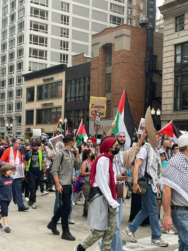 Organize olmuş 3 bin kişinin haricinde, Chicago'nun en işlek caddesi Michigan Ave üzerinden de göstericilerin katıldığı protestoda; "Daha fazla işgale son!", "Irkçı İsrail!", "İnanıyorum ki biz kazanacağız!, "Chicago'dan Cenin’e, Şirin için adalet istiyoruz!", "Filistin’e özgürlük!" sloganları atıldı.