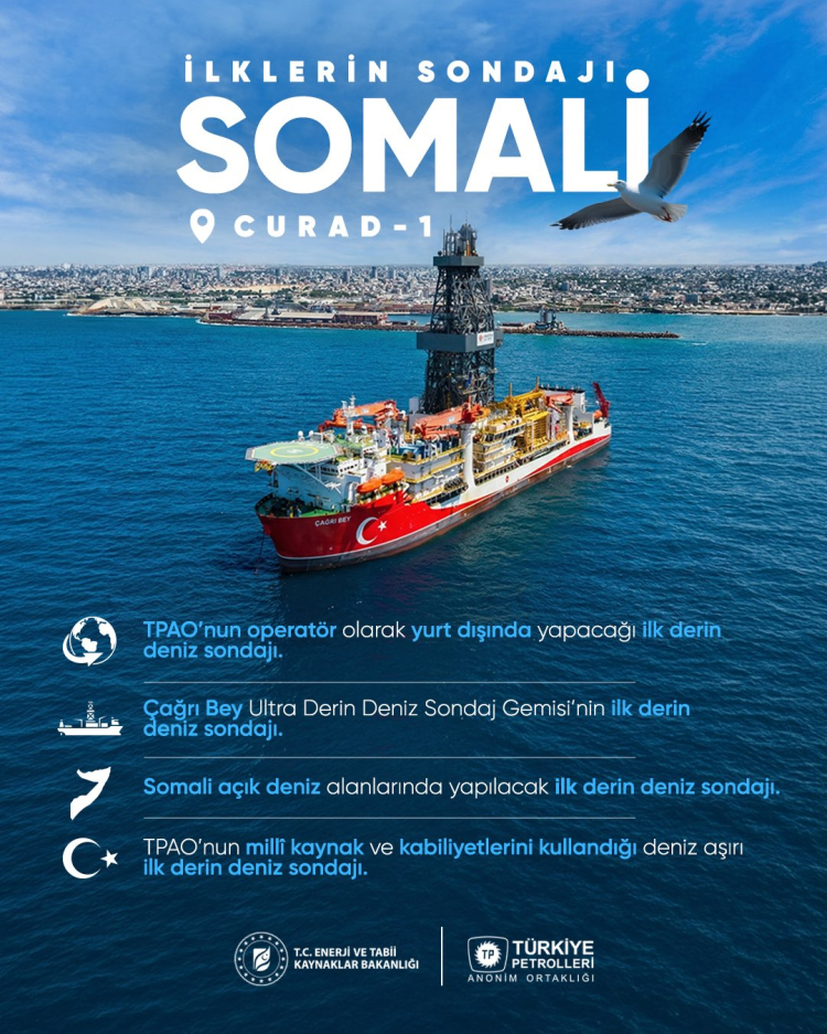ANKARA (İGFA) - Türkiye Petrolleri Anonim Ortaklığı (TPAO), Somali açıklarında yürütülecek Curad-1 kuyusu derin deniz sondajı ile enerji alanında tarihi bir süreci başlatıyor.