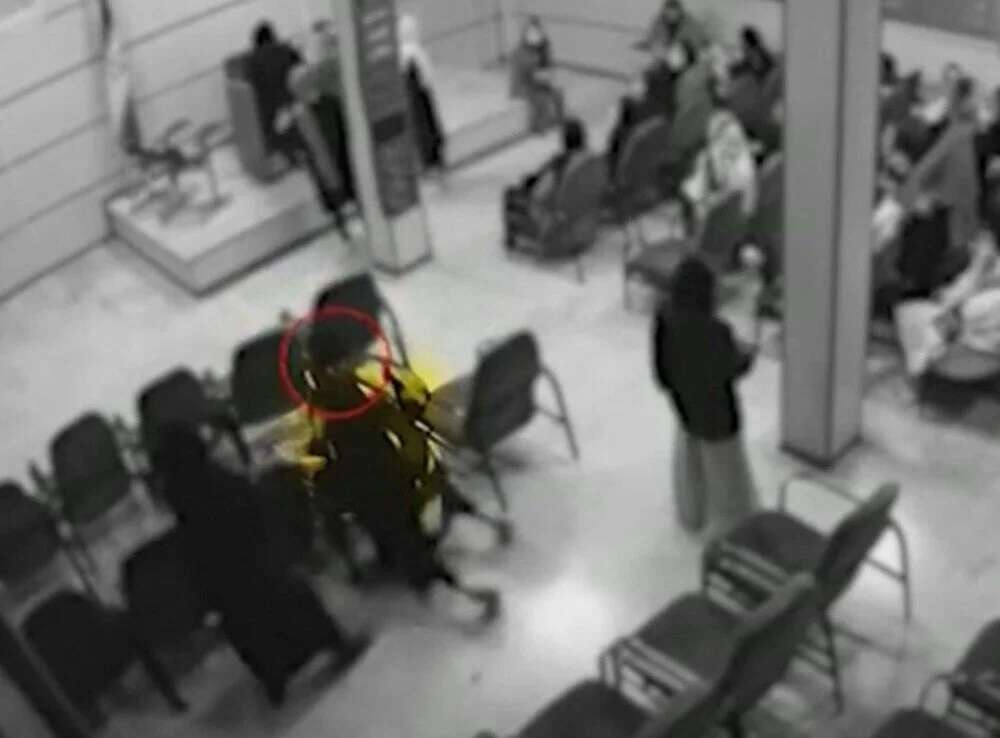 Eğtitim sınıfına girdikten sonra Amini'nin koltuklardan birine oturduğu görülüyor. 28 dakika sonra yerinden kalkan Amini, bir kadın ahlak polisi ile konuşurken fenalaşıyor.