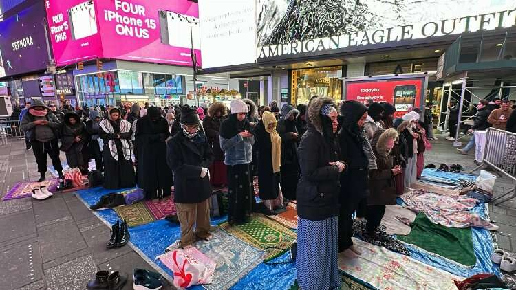 Amerika Birleşik Devletleri'nin New York kentinde bulunan ünlü Times meydanında toplanan binlerce Müslüman toplu şekilde Teravih namazı kıldı.
