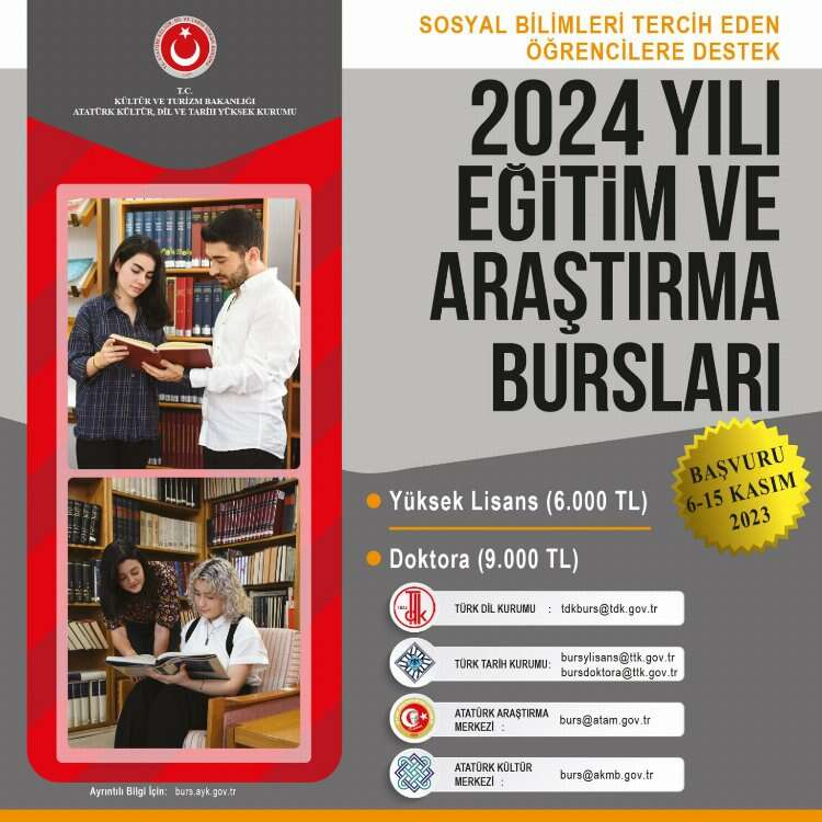 Atatürk Kültür, Dil ve Tarih Yüksek Kurumu, lisans ve lisansüstü için 2024 yılı burs başvurularının alımına 6 Kasım 2023 tarihinde başlıyor.