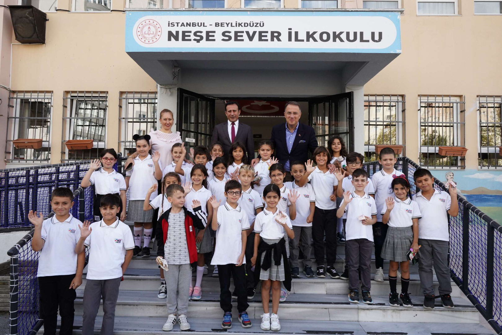 Beylikdüzü Belediye Başkanı Mehmet Murat Çalık, ilk günlerinde minik öğrencileri yalnız bırakmayarak heyecanlarına ortak oldu.