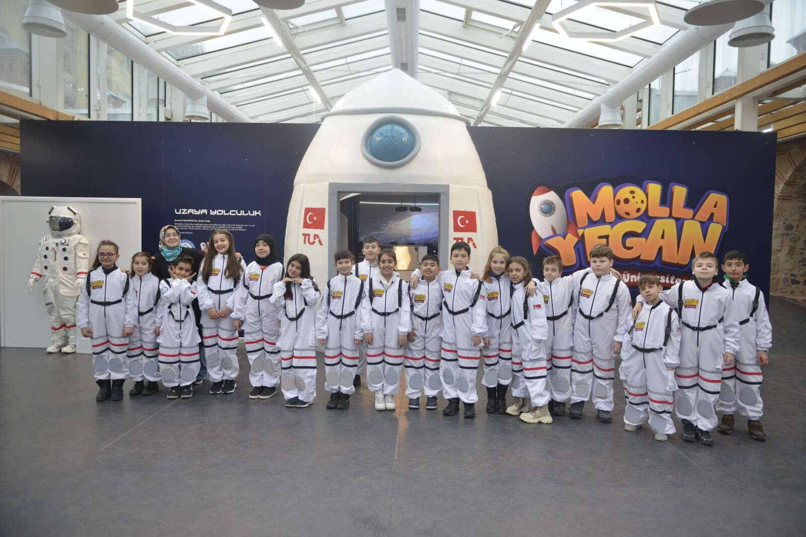 BURSA (İGFA) - Molla Yegân Çocuk Üniversitesi’ne gelen yüzlerce çocuk, astronomi ve uzay bilimleri alanında temel eğitim alıyor. Matematik, astronomi, resim, fen bilimleri, robotik kodlama, felsefe ve drama dâhil olmak üzere 11 atölye 18 branşta eğitim veren Molla Yegân Çocuk Üniversitesi’nde eğitimler tüm hızıyla devam ederken uzaya yolculuk eğitimi için okul ziyaretlerinin startı verildi.