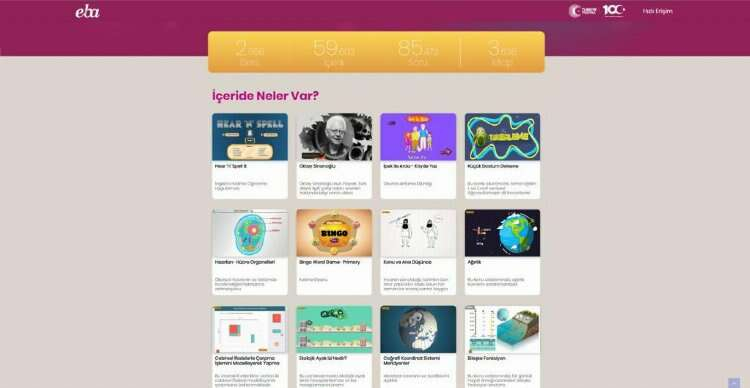Öte yandan çeşitli kamu kurum ve sivil toplum kuruluşlarından Eğitim Bilişim Ağı için 3 bin 600 adet içerik sağlayan EBA'nın içerikleri arasında tanıtım filmleri, eğitim videoları, dergiler, kitaplar, belgeler ve eğitim filmleri bulunuyor.