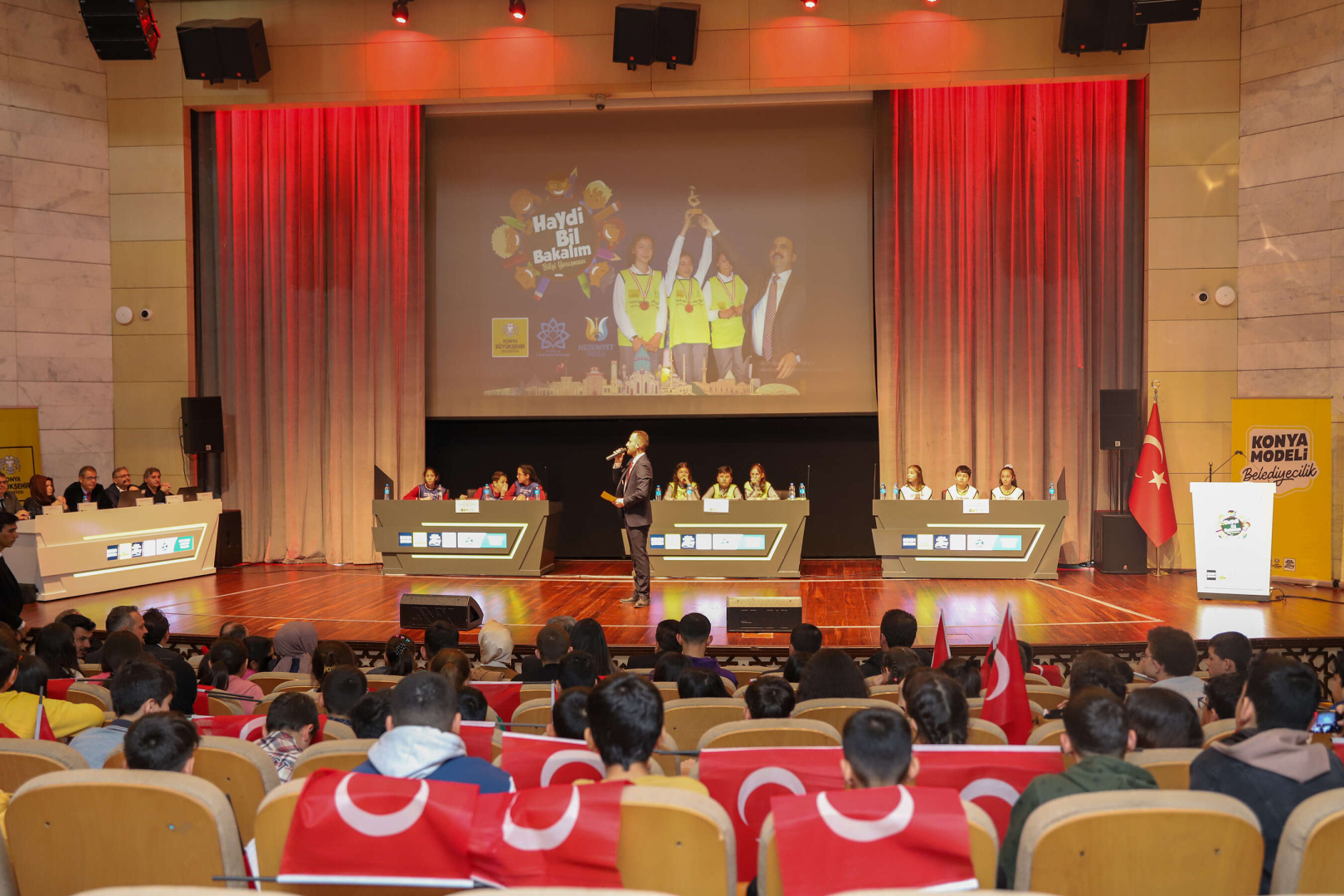 KONYA (İGFA) - Konya Büyükşehir Belediyesi ve İl Milli Eğitim Müdürlüğü iş birliğinde düzenlenen ortaokullar arası “Haydi Bil Bakalım” bilgi yarışmasının Konya finalleri yapıldı.
