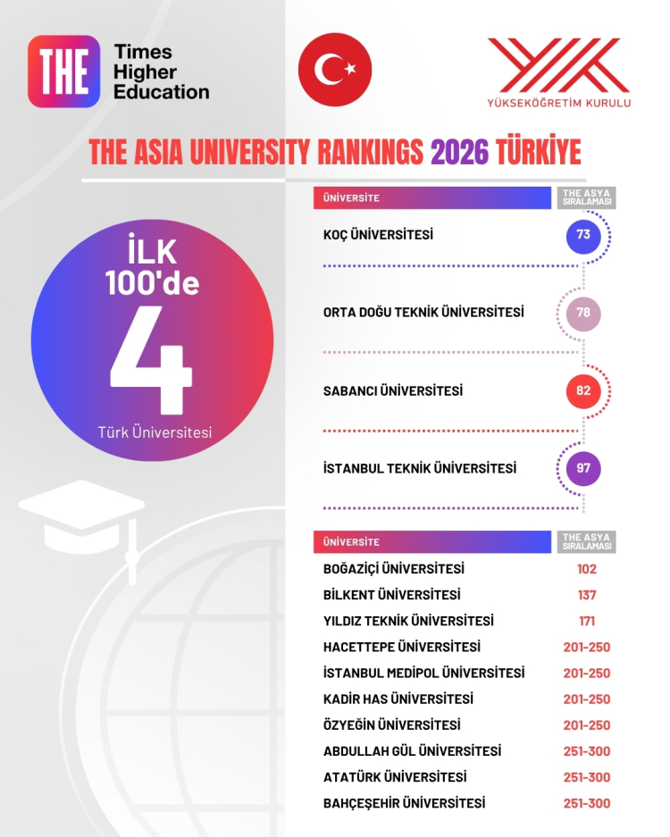 THE 2026 Asya sıralaması belli oldu... Türkiye ilk 3’te yer aldı
