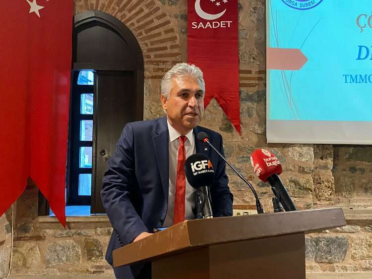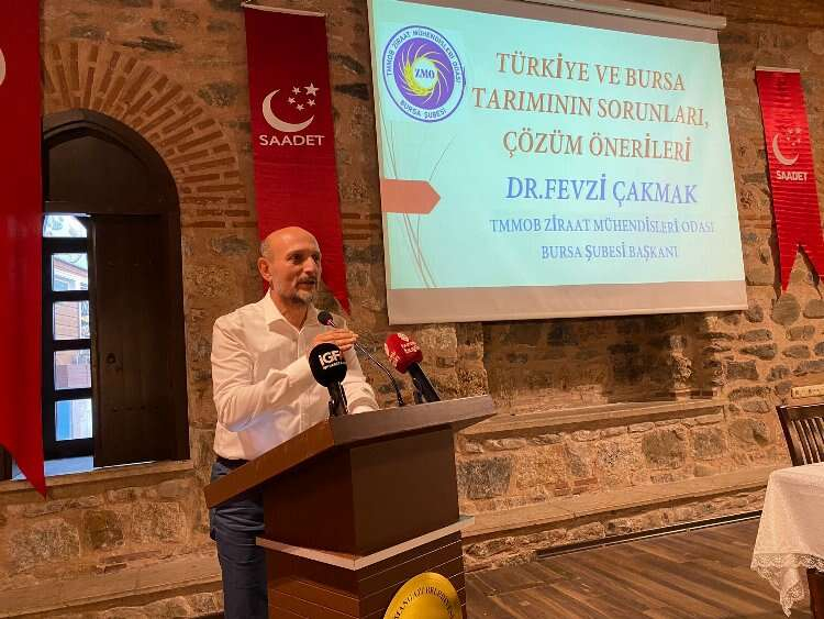 Bursa Ördekli Kültür Merkezi’nde Saadet Partisi Bursa İl Başkanlığı tarafından “Tarımda Üreten Bursa ve Yerelden Genele Kalkınan Türkiye” konulu konferans gerçekleştirildi. Gerçekleşen konferansta konuşan TMMOB Ziraat Mühendisleri Odası Bursa Şube Başkanı Dr. Fevzi Çakmak, “Gençleri çiftçilik yapmaya ikna etmemiz gerekiyor” dedi.