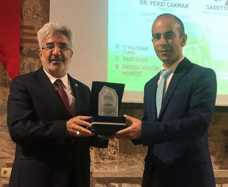Konferans sonunda TMMOB Ziraat Mühendisleri Odası Bursa Şube Başkanı Dr. Fevzi Çakmak, Mudanya Ziraat Odası Başkanı Erdoğan Yıldız, Gürsu Ziraat Odası Başkanı Kamil Dönmez, Bursa Tarım Kooperatifi Yönetim Kurulu Başkanı Osman Özkan, İnternet Gazetecileri Federasyonu Genel Başkanı Mesut Demir, Milli Gazete Haber Müdürü Saadettin İnan’a tarıma katkılarından dolayı teşekkür plaketi edildi.