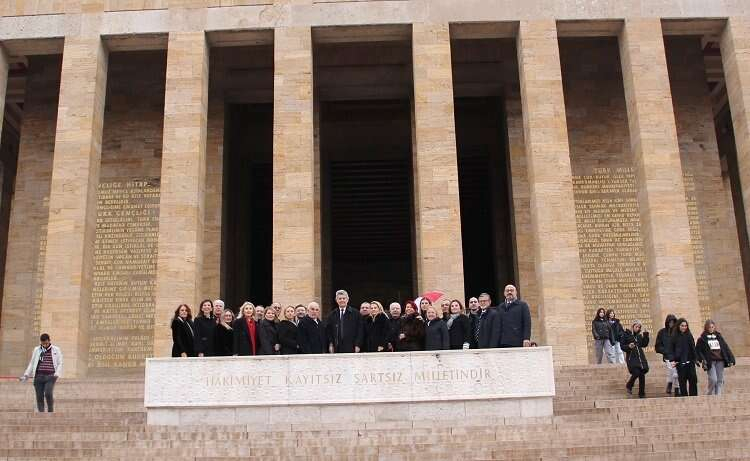 Buğra Küçükkayalar, yazdıklarını okuyarak imzaladıktan sonra, BUSİAD Heyeti ziyaretini Anıtkabir önünde toplu fotoğraf çektirerek ölümsüzleştirdi.